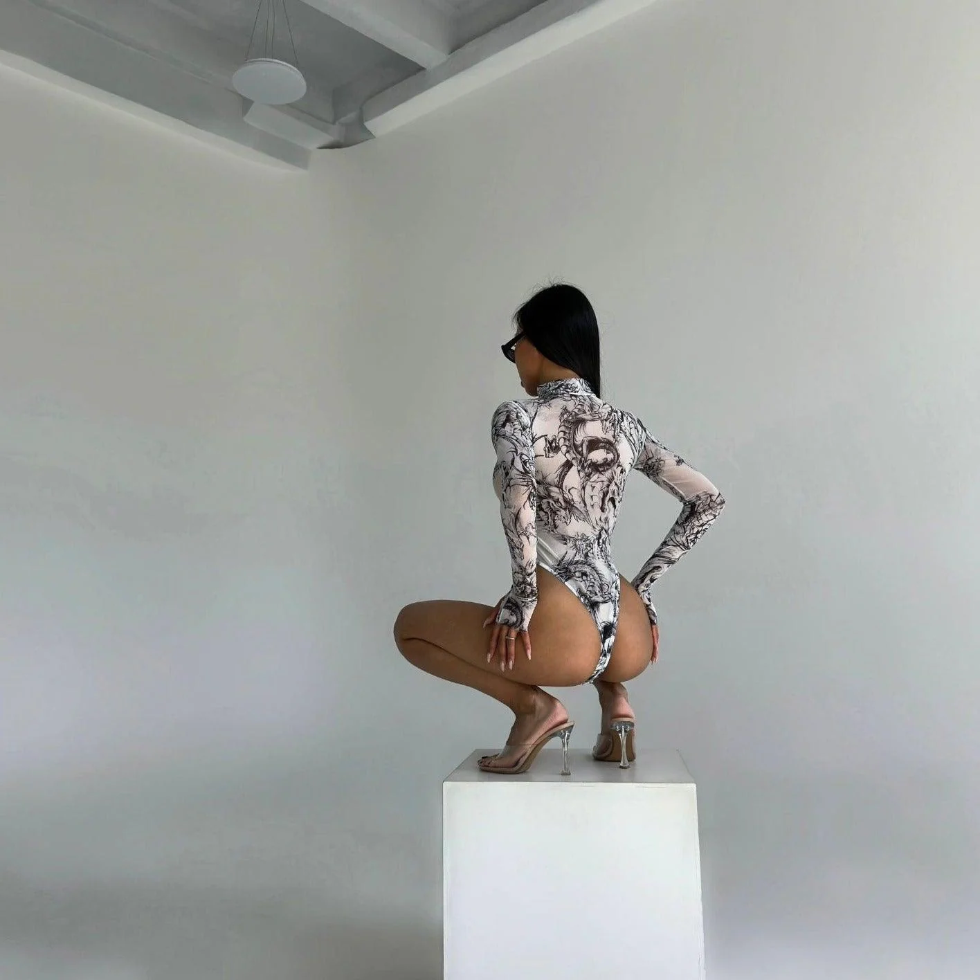 Elevate your wardrobe with this sophisticated sheer mesh bodysuit featuring a chic high-neck and seamless long sleeve design. Crafted for comfort, breathability, and style, this versatile piece effortlessly enhances your silhouette. Perfect for layering or standalone wear, it adds timeless elegance to any outfit, day or night. Update your collection with this essential statement piece that offers a polished appearance for various occasions. Visit @mermaid_way on Instagram for more styling inspiration. Enjoy a complimentary size exchange if needed.