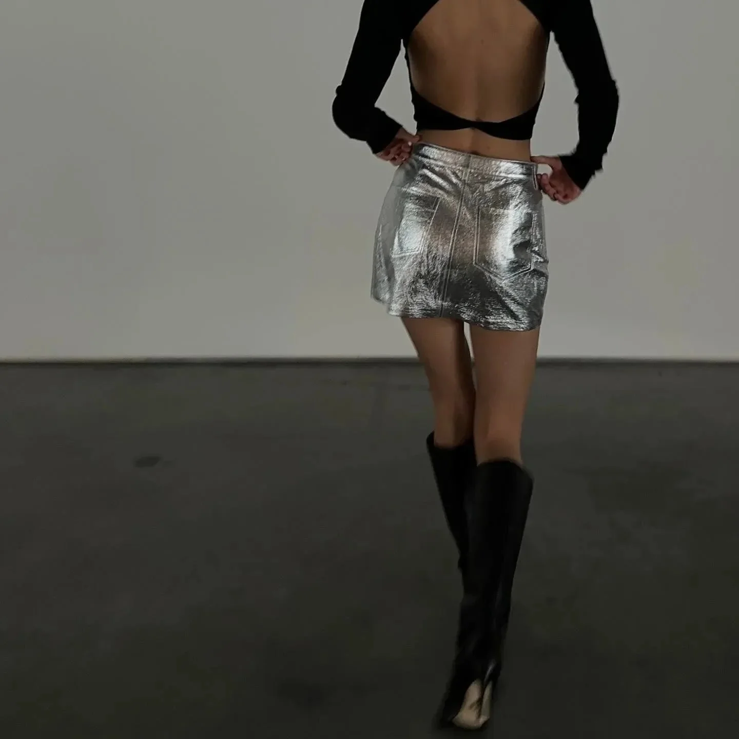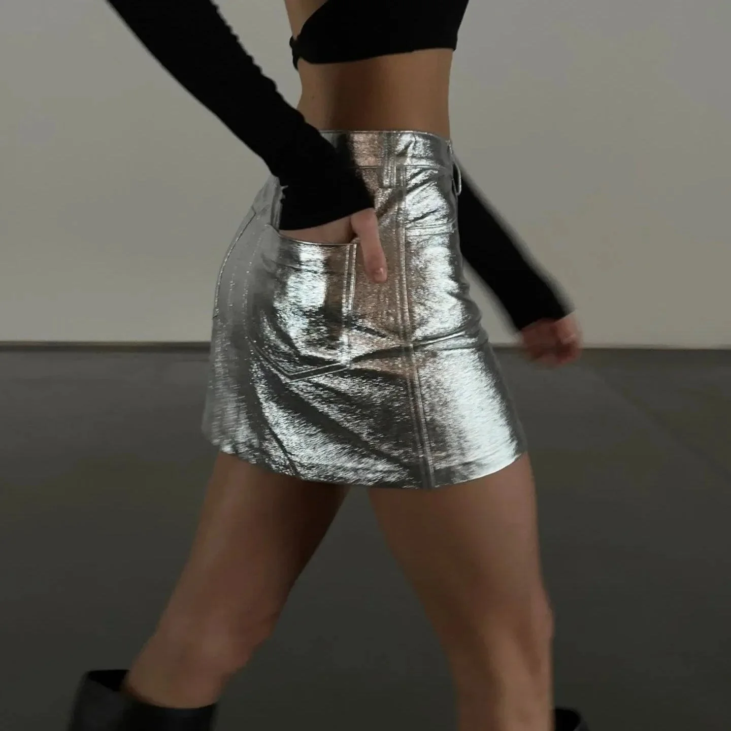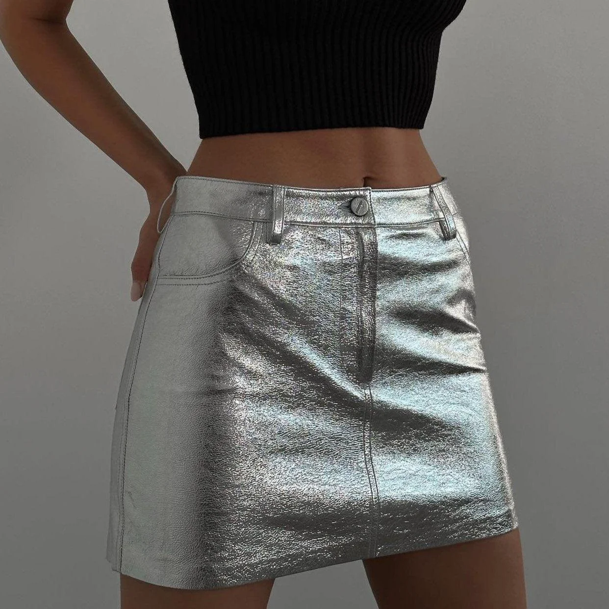 Elevate your wardrobe with our Silver Faux Leather Mini Skirt, a statement piece radiating confidence and modern flair. Crafted from high-quality faux leather, this skirt flatters your silhouette with a sleek silver finish. Perfect for nights out or special events, pair it effortlessly with crop tops, blouses, or jackets for endless style possibilities. Enjoy comfort, edge, and versatility in one piece. Showcase your legs with this mini length, perfect for heels or boots. Make heads turn with creative styling ideas from our Instagram @mermaid_way. Discover your fashion statement now!