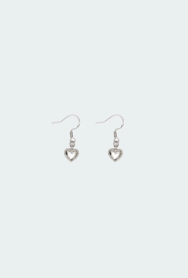 Add charm to your outfit with these stunning Silver Heart Drop Earrings. Featuring a delicate dangling heart design with intricate beaded edge detailing, crafted from high-quality silver-tone metal. These earrings measure 0.8 inches in length. For care instructions, avoid direct contact with perfume, soap or creams to maintain their luster and shine for longer.