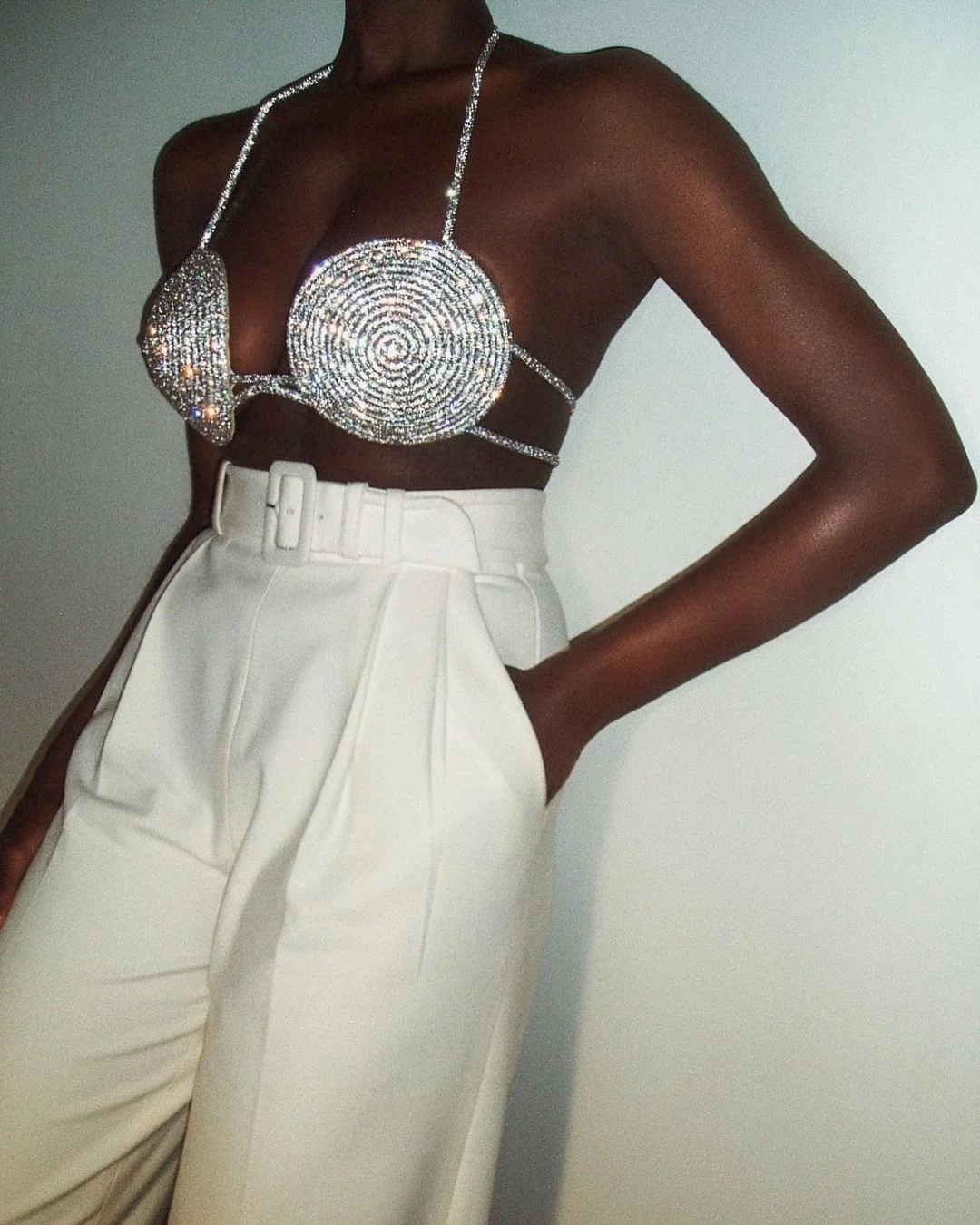 Elevate your style with our Silver Spiral Crystal Detail Bustier Top, designed to enhance your figure with precision. This stunning top features a flattering bustier design and is crafted from 100% Polyester for a comfortable fit. The intricate spiral crystal detailing adds a touch of glamour to any outfit. Hand wash cold for best care results. Please note that colors may vary slightly due to lighting. Feel confident and stylish with this versatile piece in your wardrobe. Available in sizes S, M, and L.