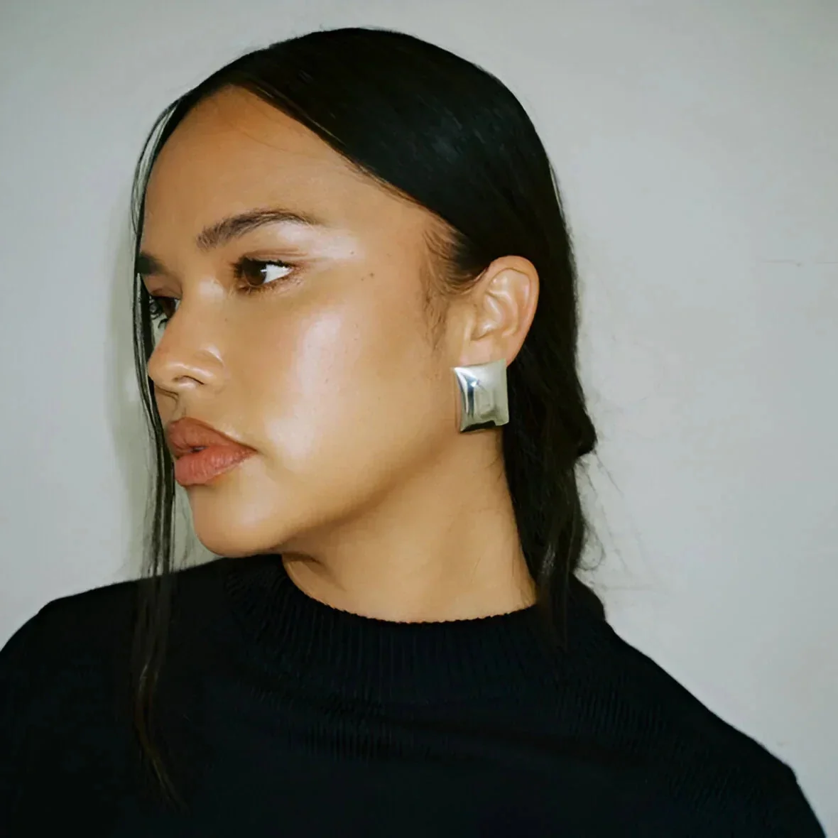 Discover elegance with our Silver Square Pillow-Shaped Earrings. These distinct earrings offer a blend of simplicity and style, making them ideal for any occasion. Made for pierced ears, they measure L – 3cm/1.2in, W – 2.5cm/0.9in. Transition effortlessly from day to night with this versatile piece that complements any capsule wardrobe. Sold as a pair. For more outfit ideas, visit our Instagram @mermaidway.