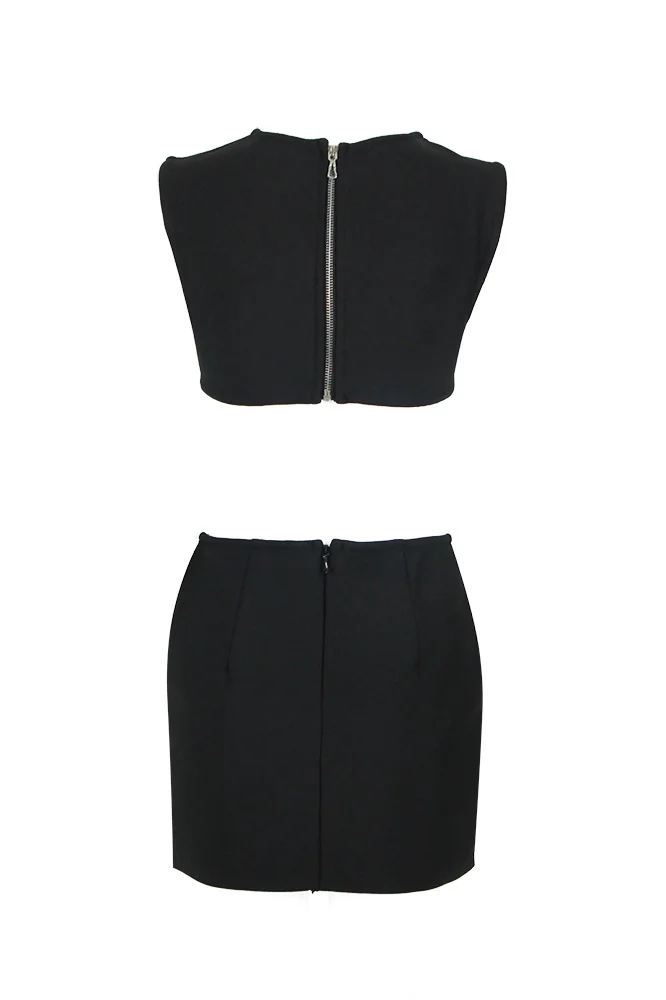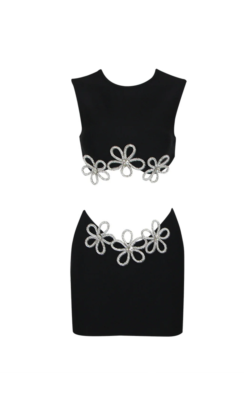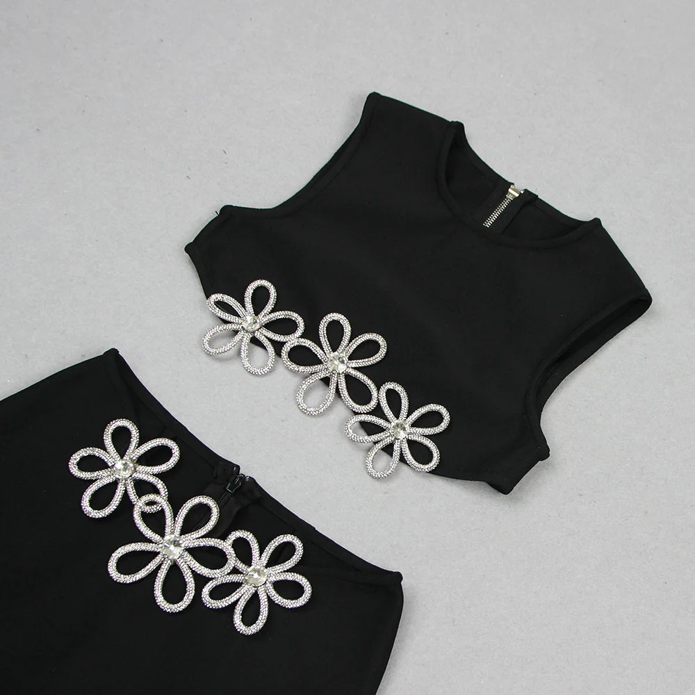 Elevate your evening with this daring dress set adorned with exquisite rhinestones. Feel like a true risk-taker in this unique ensemble that sets you apart. Dive into the night with confidence and style. This set must be gently dry cleaned to maintain its allure. Please note that colors may vary slightly due to lighting in images. The product images displayed without a model are the most accurate representation of the products color. This item fits true to our size chart and is tailored to flatter. Please consult our size chart for optimal sizing guidance, avoiding upsizing or downsizing for the best look.