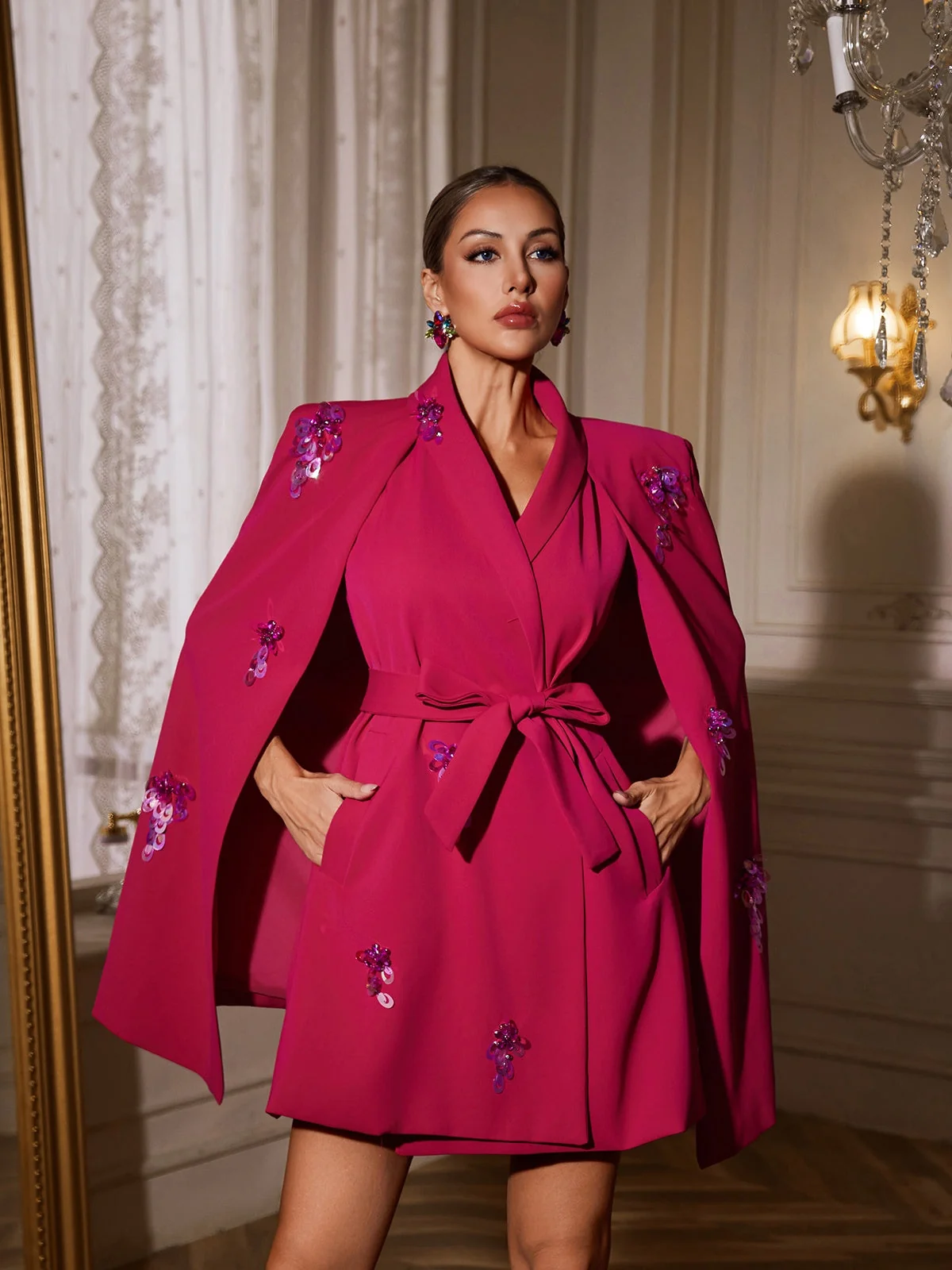 Elevate your wardrobe with the Sleek Sleeveless Shawl Blazer for a polished look in any setting. This versatile piece offers sophistication and comfort with its tailored fit, elegant shawl collar, and sleeveless design. Suitable for work or evenings out, it effortlessly blends modern style with classic charm. Made of 100% Polyester with a non-stretch factor, this blazer is easy to care for with dry clean only instructions. The color may vary due to lighting. Model is wearing size S for reference.