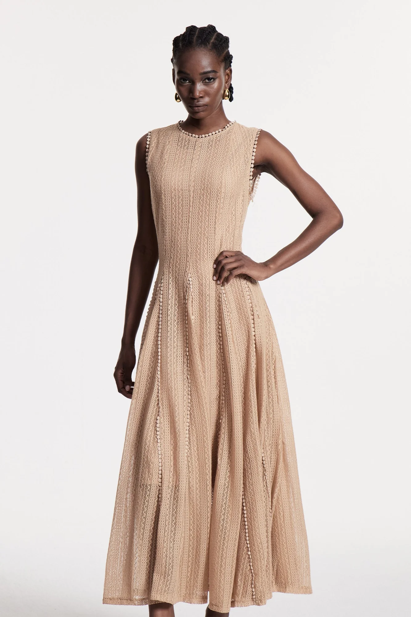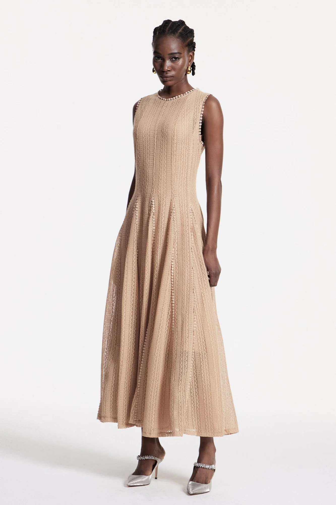 Indulge in the refined silhouette of the Sleeveless Brown Maxi Dress for women, offering effortless elegance for any occasion. This chic essential boasts sleeveless design for breathability, ease of movement, and graceful flow in the maxi length. Perfect for formal events or relaxed gatherings, this dress seamlessly blends sophisticated style with practical comfort. Enjoy a polished look with the ultimate wearability factor. Disclaimer: Color may vary due to lighting effects. The non-stretch dress is best cleaned with a gentle machine wash.