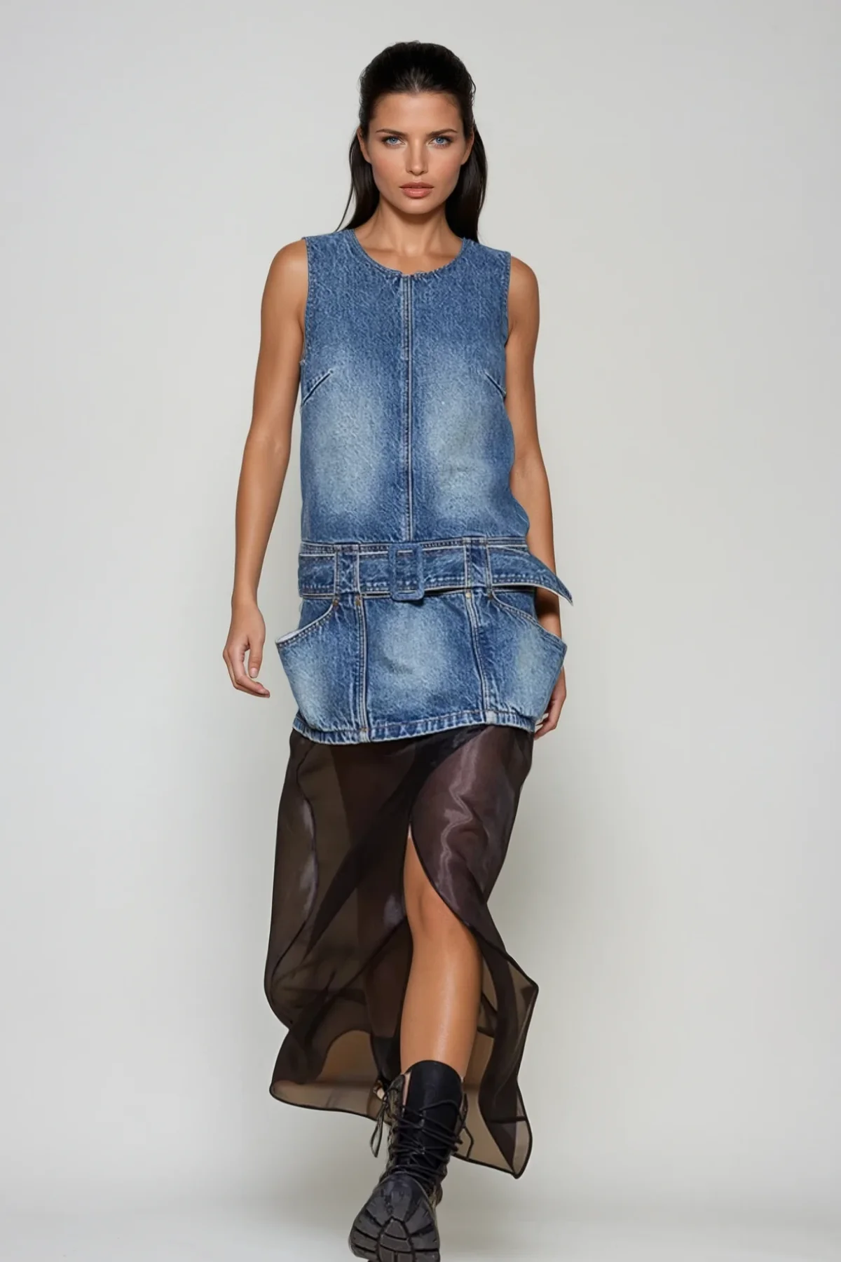 Elevate your wardrobe with the stylish Sleeveless Mini Denim Dress in Blue . Expertly crafted from high-quality denim, this structured yet comfortable dress is ideal for warm weather or layering. The sleeveless design enhances mobility and breathability, while the mini length offers a modern, youthful silhouette for casual outings or daytime events. Combining classic denim appeal with contemporary sensibility, this chic essential is versatile and enduring. Note: Color may vary due to lighting. Stretch Factor: Non Stretch. To maintain, gentle machine wash.
