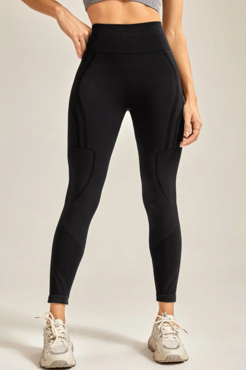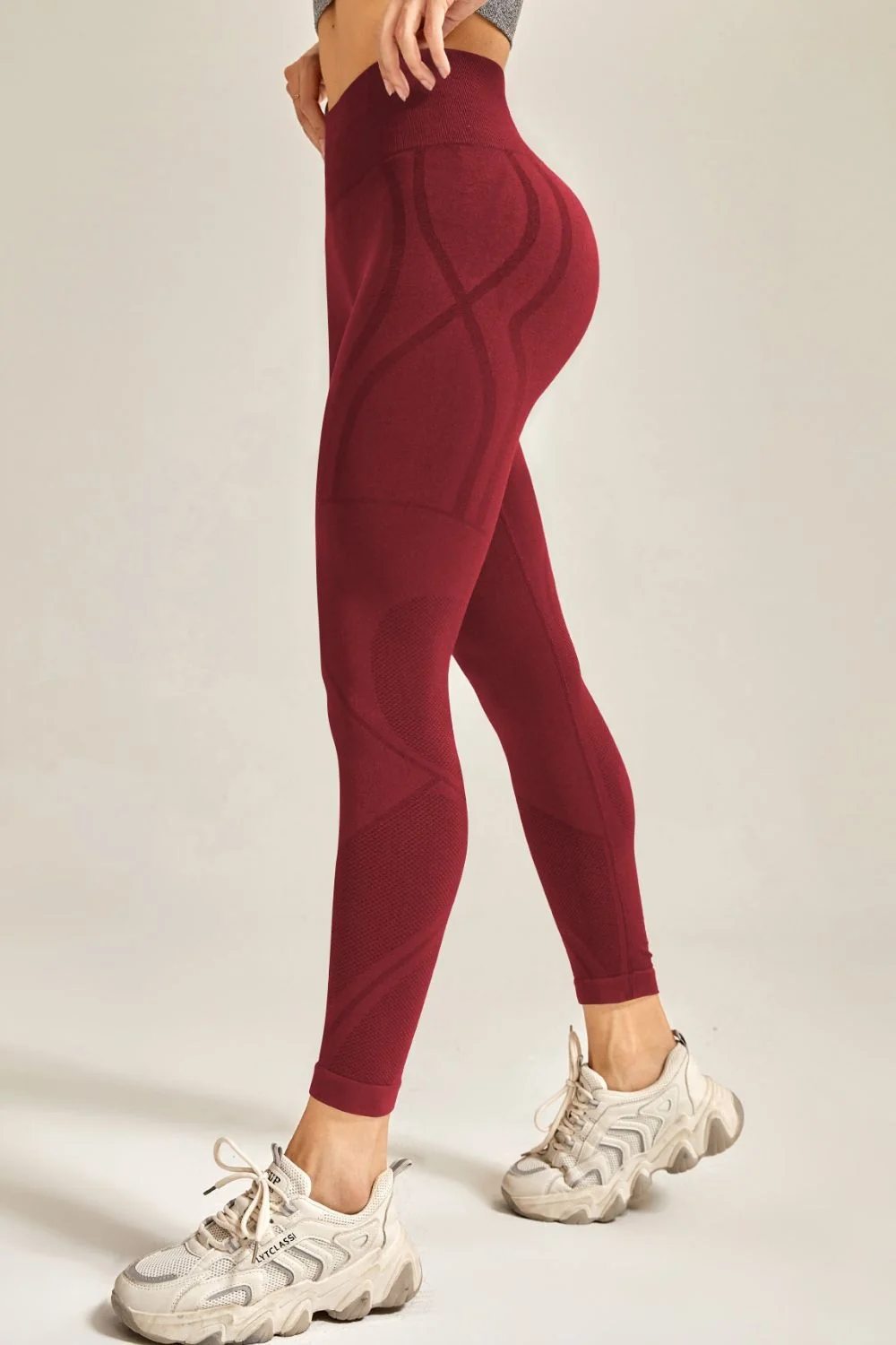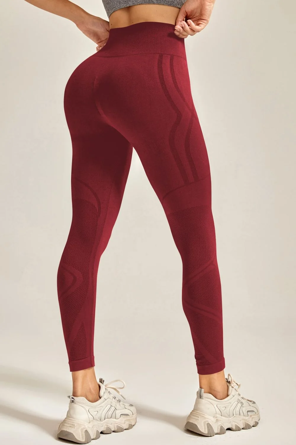 Achieve your fitness goals in style with our sporty slim fit leggings. These highly stretchy leggings feature a wide waistband for enhanced comfort during workouts. Crafted from a blend of 90% polyamide and 10% elastane, these long leggings offer both flexibility and durability. Machine wash cold and tumble dry low for easy care. Available in various sizes and trendy colors: black, wine, pastel yellow, sage, chocolate, and coral.