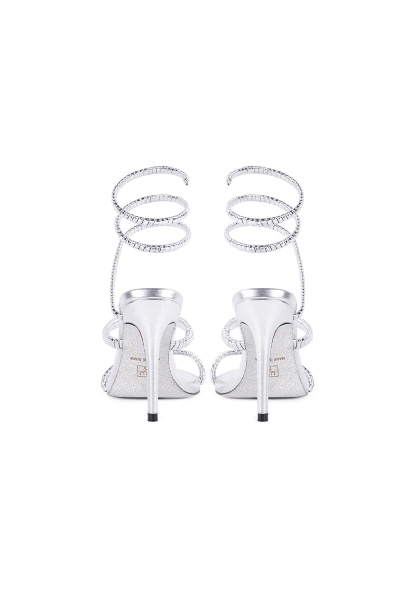 Elevate your prom look with our Snake Wrap Stiletto Heels. These glamorous sandals feature a daring snake wrap design, sleek open toe, 10 cm stiletto heel, secure buckle closure, and a glossy patent leather sole for all-night comfort and style. Stand out on the dance floor with these party essentials. Available in Gold or Silver. Heel Height: 10 cm. Heels Type: Stiletto. Closure Type: Buckle. Toe: Open Toe. Sole Material: Patent Leather. Lining Material: Rubber.