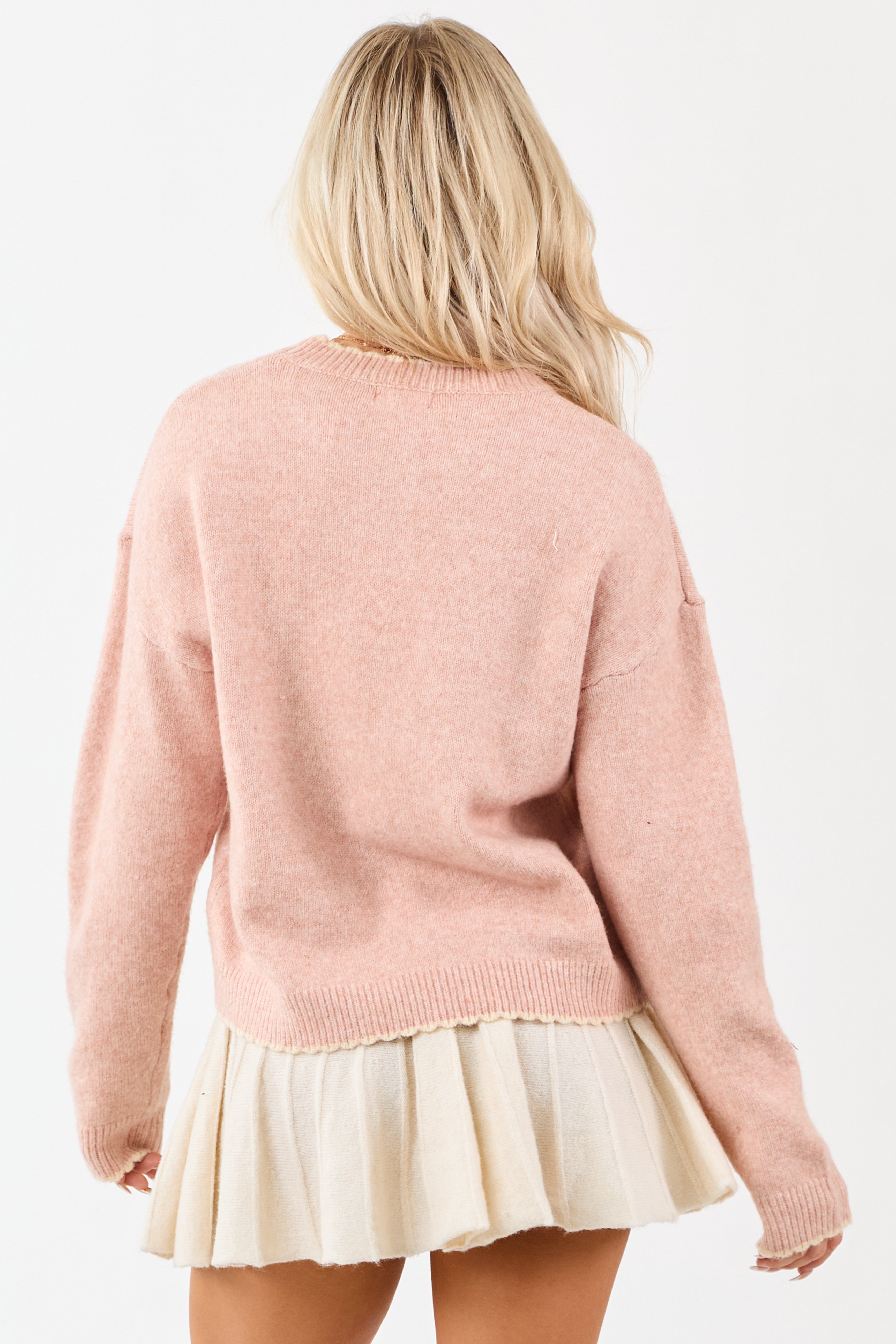 Stay warm and cozy in this relaxed wool blend sweater featuring a neutral cream contrast trim. Made with a stretchy soft knit, drop shoulder design, and banded ribbed trim for added style and comfort. This sweater is a perfect addition to your fall wardrobe. Available in sizes S, M, and L. Imported. Model is wearing a size Small.Model’s Profile: Size 3, Height 57″, Bust 35″, Waist 26″.
