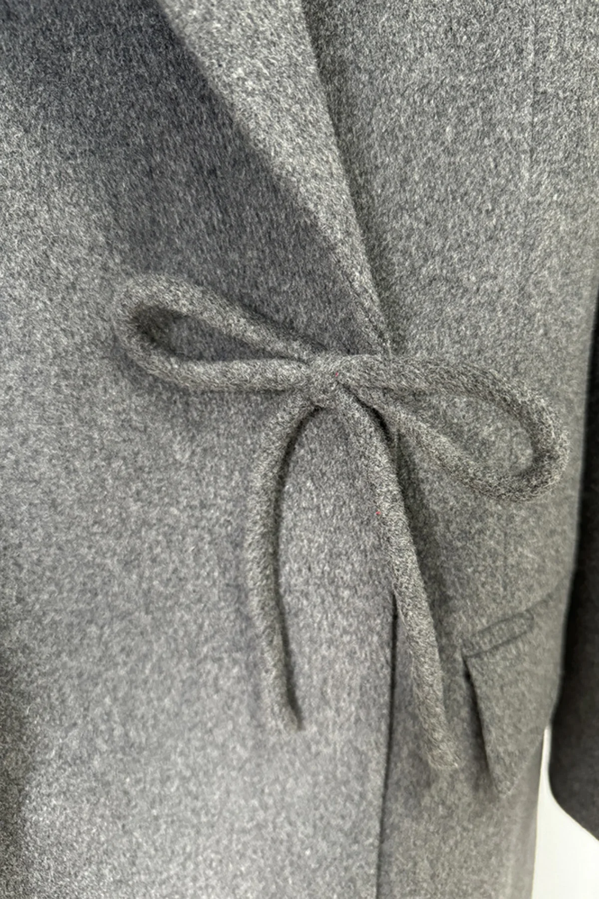 Elevate your winter wardrobe with this sophisticated grey bow lapel coat . Crafted from high-quality 100% polyester, this coat provides both warmth and style. The timeless design with a bow lapel effortlessly transitions from casual to dressy occasions, ensuring you stay fashionable and cozy. Experience the ultimate blend of elegance and comfort with this must-have piece. Please note that color may vary due to lighting conditions. Dry clean only. Ideal for those seeking a chic outerwear option.