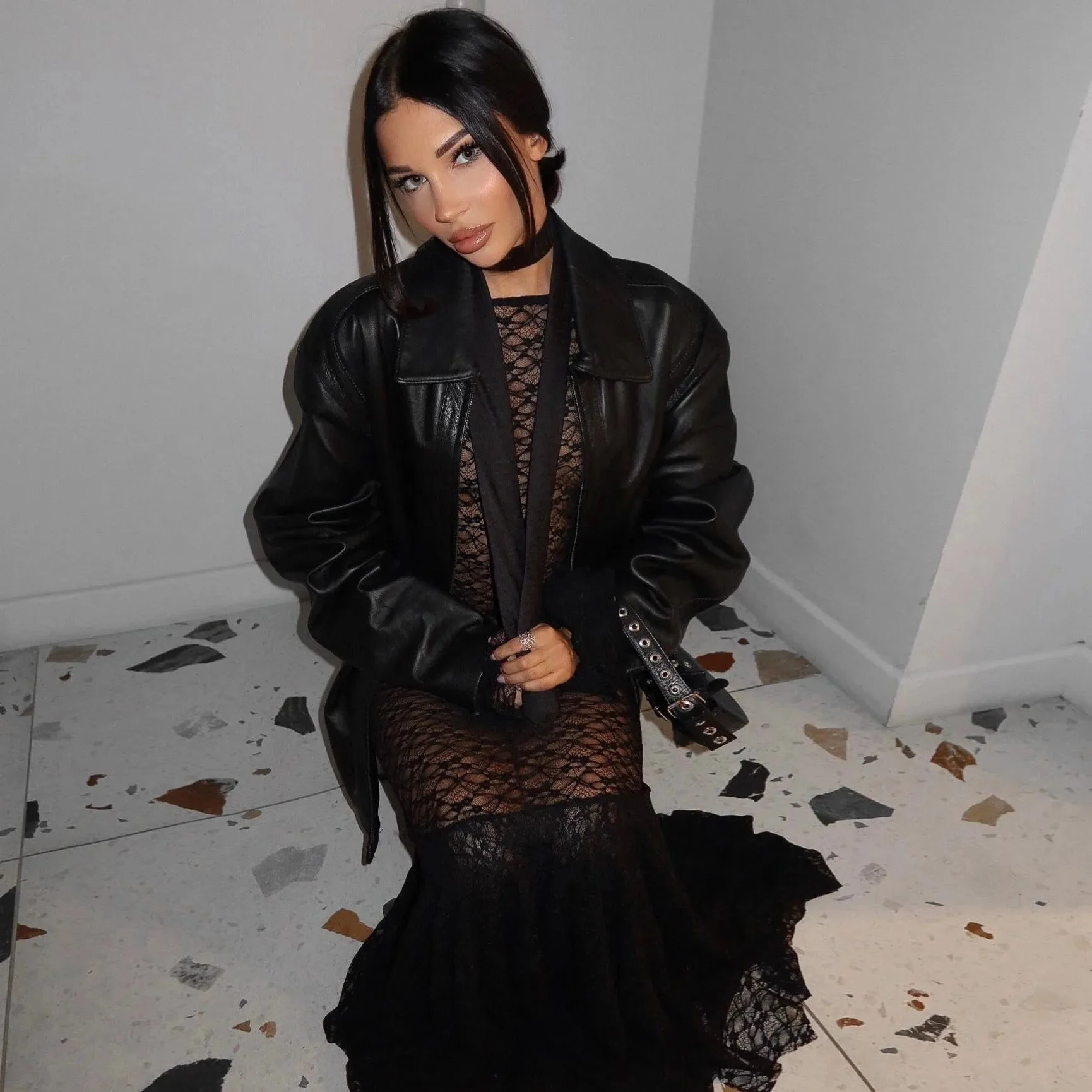 Step into the night with sophistication wearing the Lace Mermaid Maxi Dress, a statement piece that exudes allure and elegance. This form-fitting gown in intricate lace fabric drapes beautifully over your curves, culminating in a flowing, floor-length hem. The vintage drama of delicate bell cuffs contrast with the modern design, while the high neckline adds a touch of balance to its daring silhouette. Perfect for evening events and galas, this dress pairs impeccably with sleek heels and statement jewelry for a truly unforgettable look. Crafted for special occasions, this gown is a must-have in every fashion-forward womans wardrobe. For more style inspirations, follow us on Instagram @mermaid_way. Should you need to exchange sizes, our team is here to assist you.