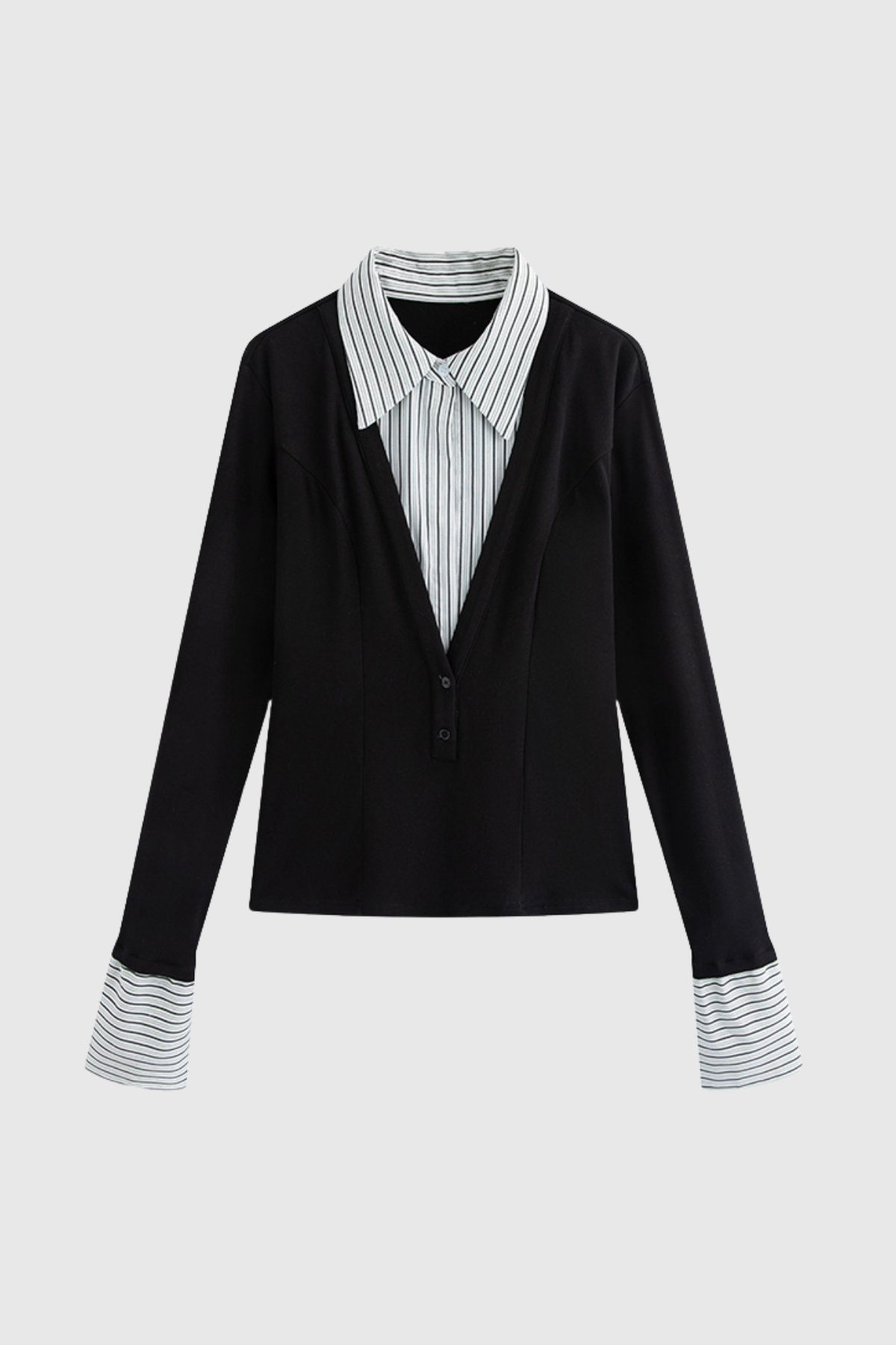 Upgrade your wardrobe with the Sophisticated Stripe Plunge Pants Set in Black . This chic essential exudes tailored sophistication with a modern twist. The plunging neckline and sleek striped pattern offer a refined silhouette suitable for professional or upscale casual occasions. Designed for both comfort and style, this set ensures you stand out with confidence and polished elegance all day long. Its perfect for effortless transitions from daytime meetings to evening gatherings. Please note that the top and pants are sold separately. For a complete set, dont forget to order both pieces. Take care of this non-stretch garment with a gentle machine wash. Experience the versatility of this set that complements your rebel office style. Due to lighting effects, color may vary slightly. The product photos without models represent the true colors best.