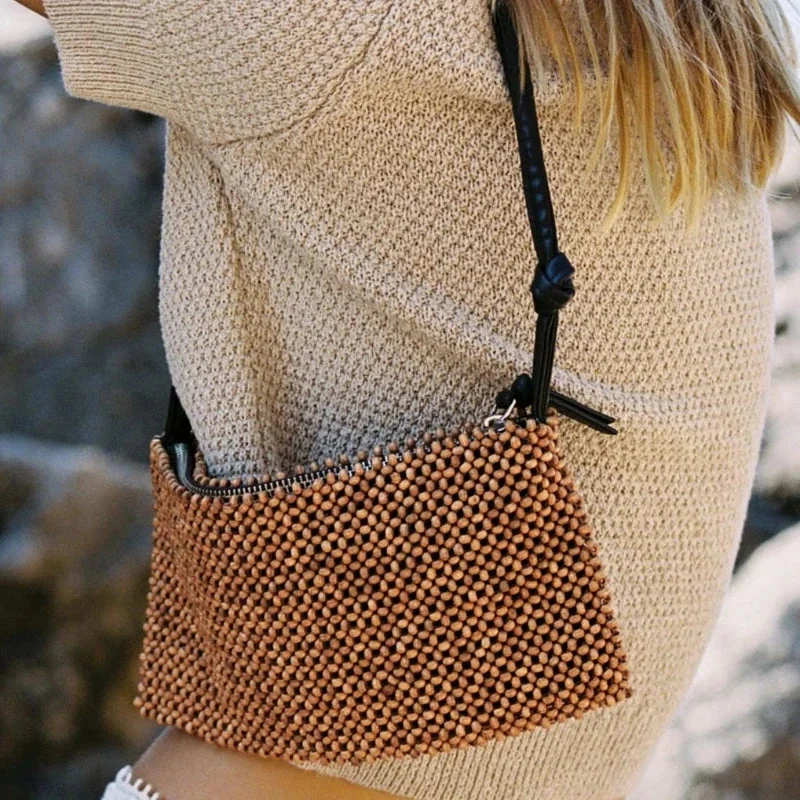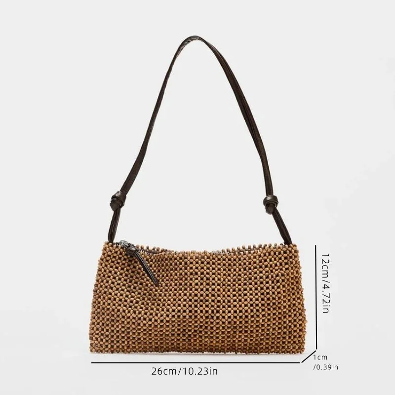 Indulge in glamour every day with the Sparkling Beads Grid Shoulder Bag in a luxurious bronze hue. This bag strikes an exquisite balance between timeless allure and practicality. The dazzling beads form a captivating grid pattern, complemented by a structured silhouette for a blend of modernity and classic charm. With its spacious interior, organizing your essentials is a breeze, ensuring you travel in style with utmost convenience. The versatile shoulder strap guarantees comfort, effortlessly transitioning from day to night events. From casual ensembles to upscale attire, this accessory is a versatile addition to any wardrobe. Dimensions: L – 26 cm / 10.2 inch, W – 1 cm / 0.4 inch, H – 12 cm / 4.7 inch. Explore fashion inspiration on our Instagram @mermaidway.