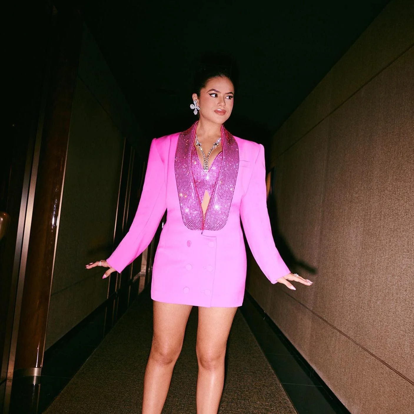 Make heads turn with our Sparkling Pink Cutout Mini Dress. This elegant dress is adorned with dazzling crystals and features a chic cutout design, perfect for special occasions. The form-fitting silhouette not only enhances your shape but also ensures comfort all day or night long. Crafted from high-quality polyester and spandex, this dress blends style with durability. Versatile for parties, cocktails, or formal gatherings, it pairs beautifully with various accessories to become a staple in your wardrobe. Elevate your confidence, leave a lasting impression, and shine at any event with this wardrobe essential. Explore fashion ideas and styling tips on Instagram @mermaid_way. Materials: Polyester, Spandex. Enjoy worry-free sizing – we offer a complimentary exchange if the fit isnt perfect.