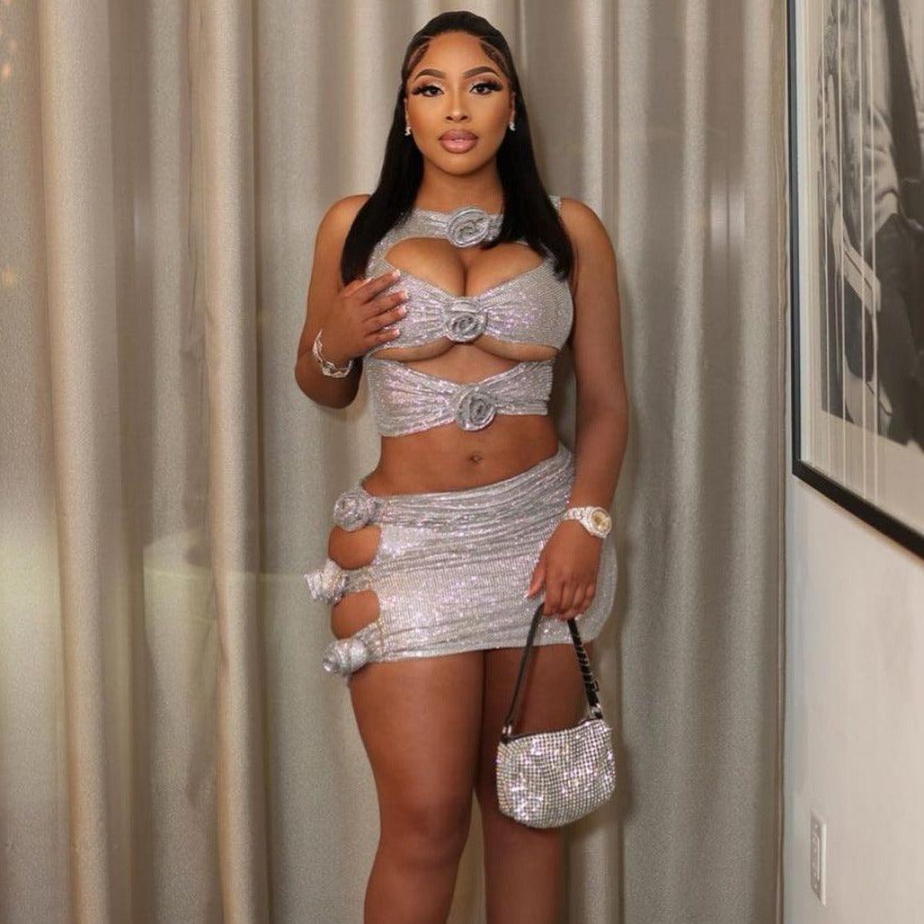 Elevate your style with the Sparkling Rhinestone Two-Piece Dress Set, featuring a shimmering diamond-patterned skirt and a chic top. This elegant ensemble offers both luxury and comfort, enhancing your look for any special occasion. Crafted from high-quality polyester with a slight stretch, this set ensures a flattering fit. The zippered back adds convenience. Stand out at events with this versatile set that blends fashion and sophistication effortlessly. Embrace a new level of style with this must-have two-piece set and shine bright wherever you go. Enjoy free size exchanges for the perfect fit. Visit our Instagram @mermaid_way for more outfit inspiration.