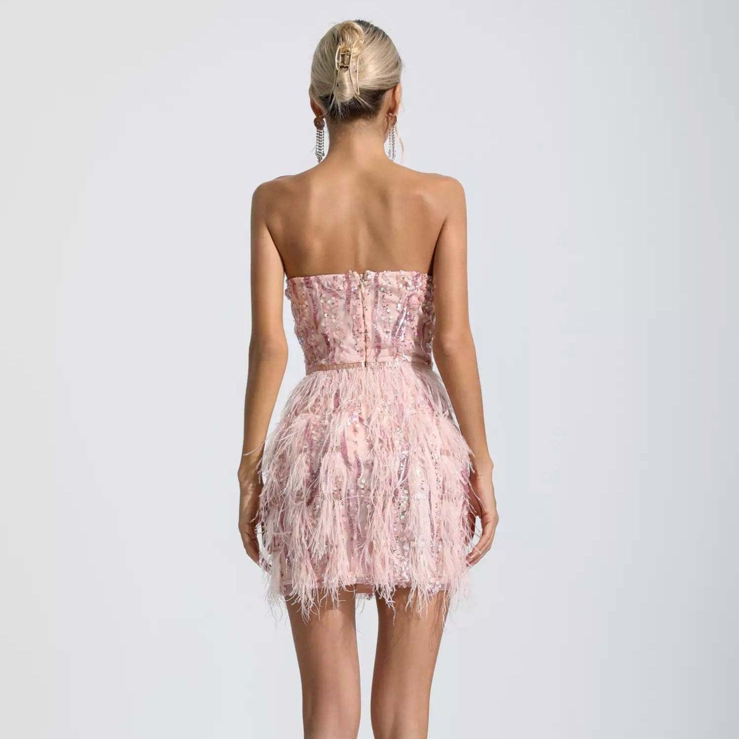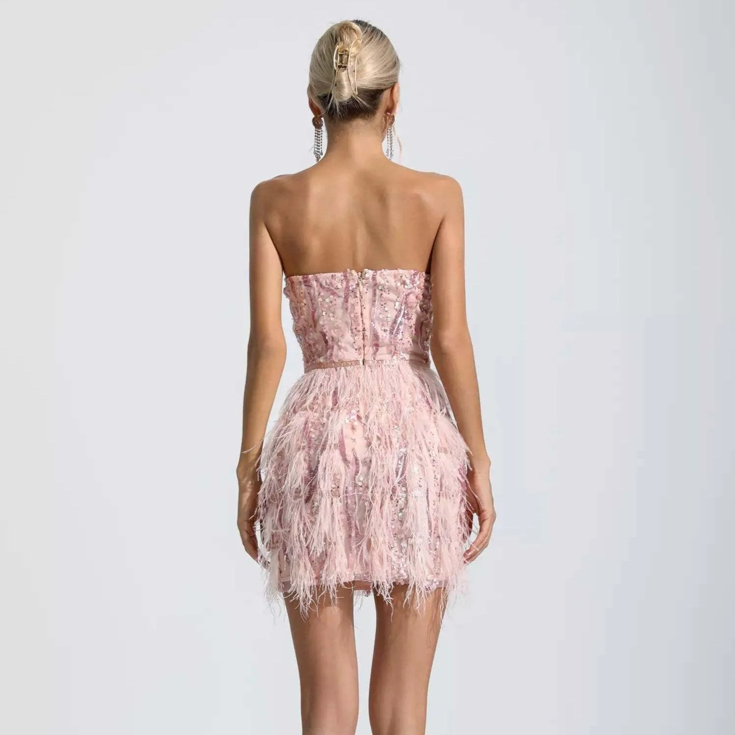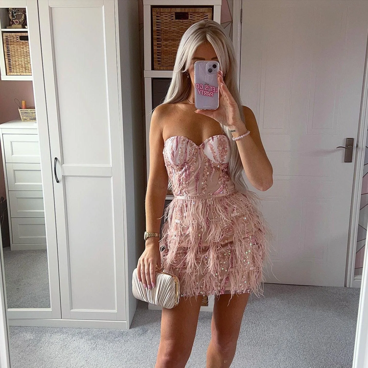 Elevate your look with our Sequin Mini Dress, designed to make a bold statement. This dazzling dress showcases intricate sequin embellishments and playful feather accents for added glamour and elegance. The slim fit ensures a chic and confident appearance at any occasion. Ideal for parties, weddings, or special events, this sequin mini dress effortlessly combines style and sophistication. Get ready to shine at your next gathering with this unforgettable and glamorous attire. Bring a sparkle of elegance to every special moment! Follow us on Instagram @mermaid_way for more style inspirations and trends. FEATURES: – Low Stretch – Gentle hand wash – Invisible zipper at the back. MATERIAL: Crafted from 100% polyester with a 95% polyester and 5% spandex lining. Enjoy a complimentary size exchange if the fit is not perfect.