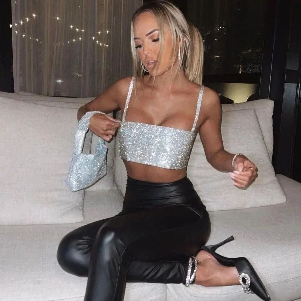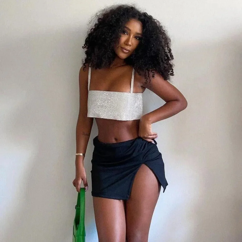 Step into the spotlight with our Sparkling Sequin Glam Crop Top in Silver! This dazzling crop top is embellished with mesmerizing sequins that shimmer elegantly under any light. Whether youre preparing for a night out or a special occasion, this fitted top accentuates your curves while exuding a lavish charm that is bound to turn heads. Tailored with premium chiffon and spandex, this crop top guarantees both comfort and durability. The adjustable straps ensure a personalized fit, and the alluring sequined fabric delivers a radiant and sophisticated look. Elevate your style game at parties and events with the confidence that this top brings. Infuse some sparkle into your wardrobe with this essential piece and unleash your inner glam goddess. For more fashion tips, explore our Instagram @mermaid_way. Material: Chiffon, Spandex If the sizing is not optimal, were delighted to exchange it for a better fit.