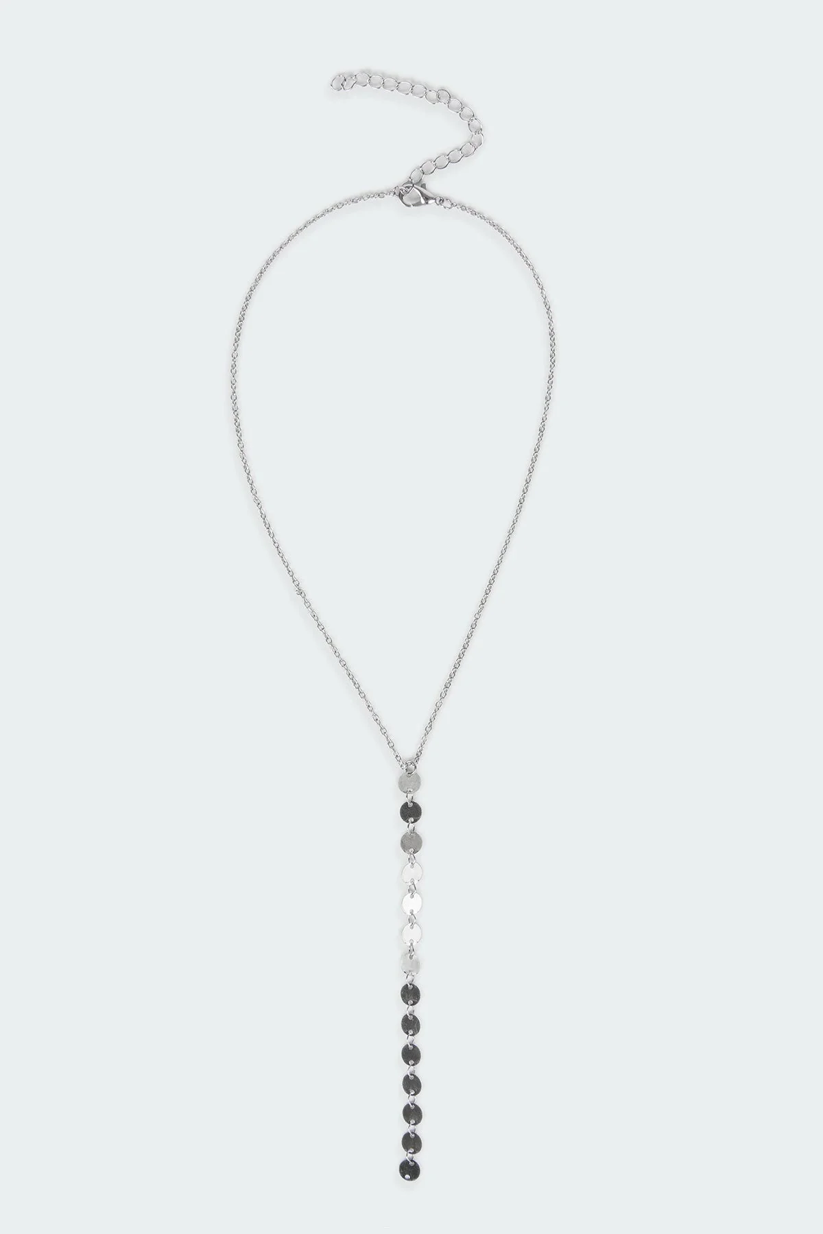 Discover the elegance of our Sparkling Silver Sequin Necklace, a statement piece crafted from silver-tone metal with cascading sequins. This stylish necklace measures 17 inches in length with a drop length of 4.5 inches, perfect for adding shimmer to any outfit. Maintain its shine by avoiding direct contact with perfume, soap, or creams. Elevate your look with this glamorous accessory today!