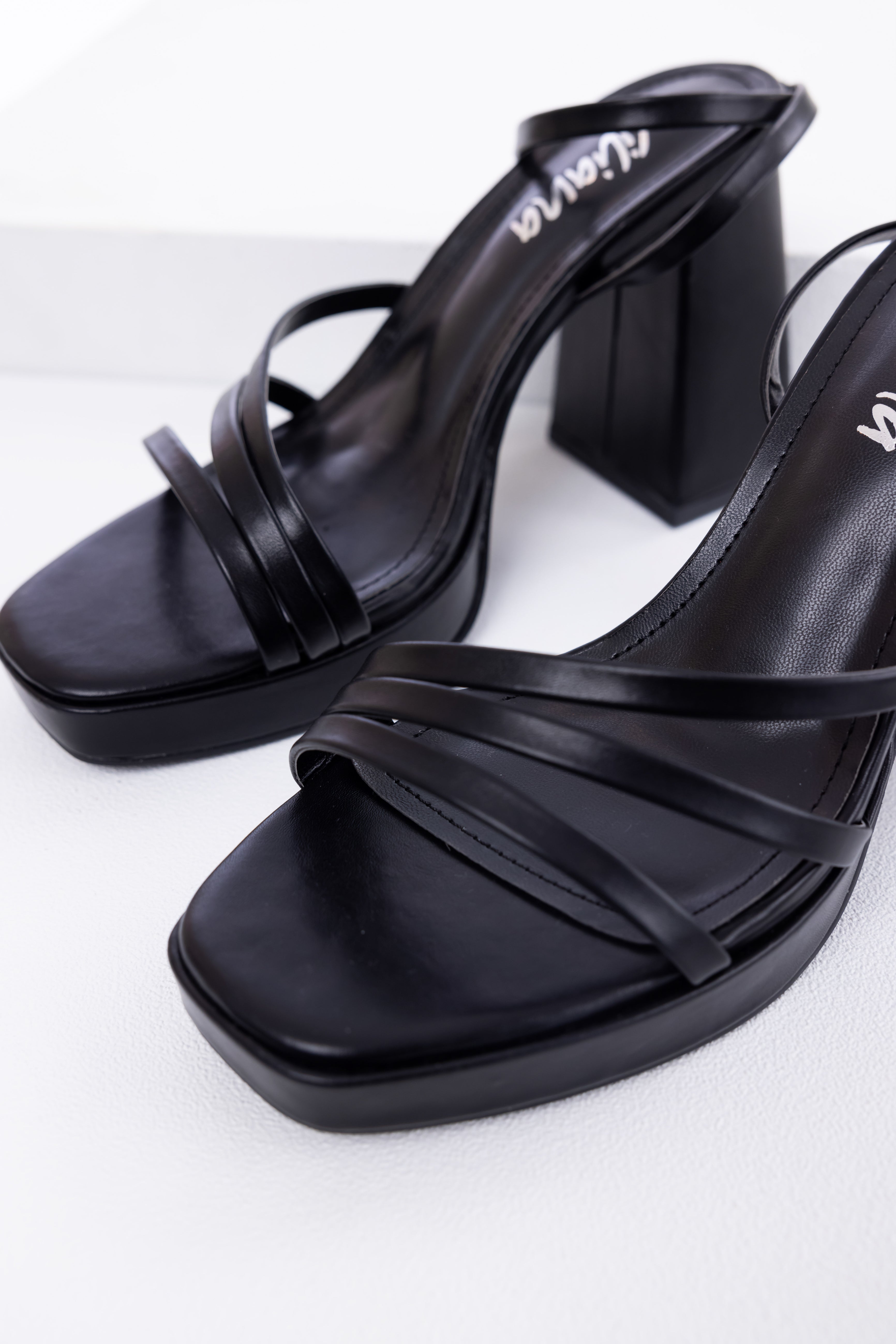 Step out in style with these chic black block heel sandals. Made of faux leather, features 3 asymmetrical toe straps, an adjustable buckle ankle strap, open square toe, and a comfortable .75″ platform with a 4.25″ heel height. The 1″ strap and 3.5″ shaft add an elegant touch to these imported sandals. Available in sizes from 5.5 to 10.