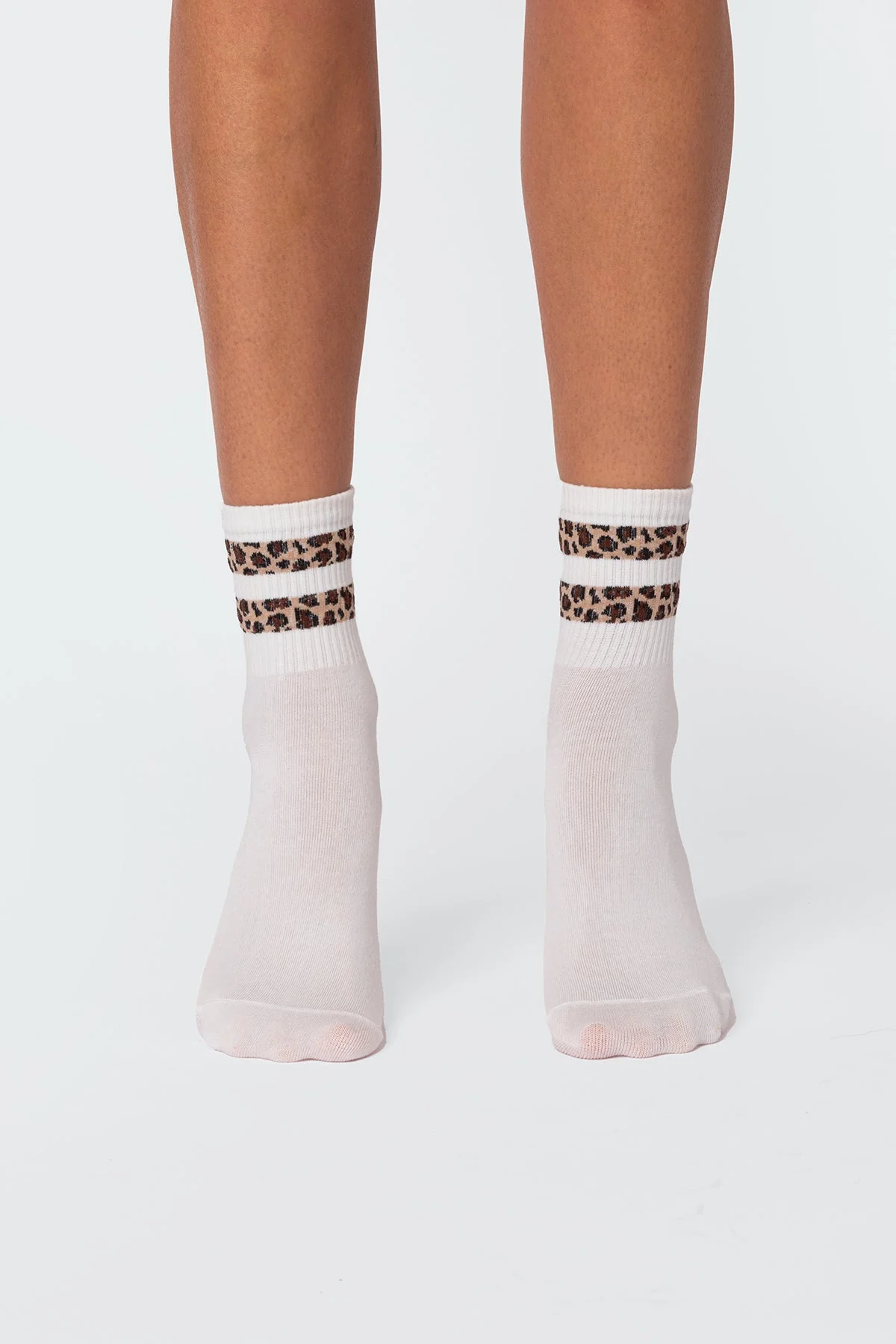 Discover comfort and style with our Stripe Pattern Cotton Socks in White Color. Made from a blend of Cotton and Spandex, these socks feature a trendy Cheetah print design with stripes. The length is approximately 10.2 inches, providing a perfect fit. Care Instructions: Machine wash with similar colors to maintain the quality.