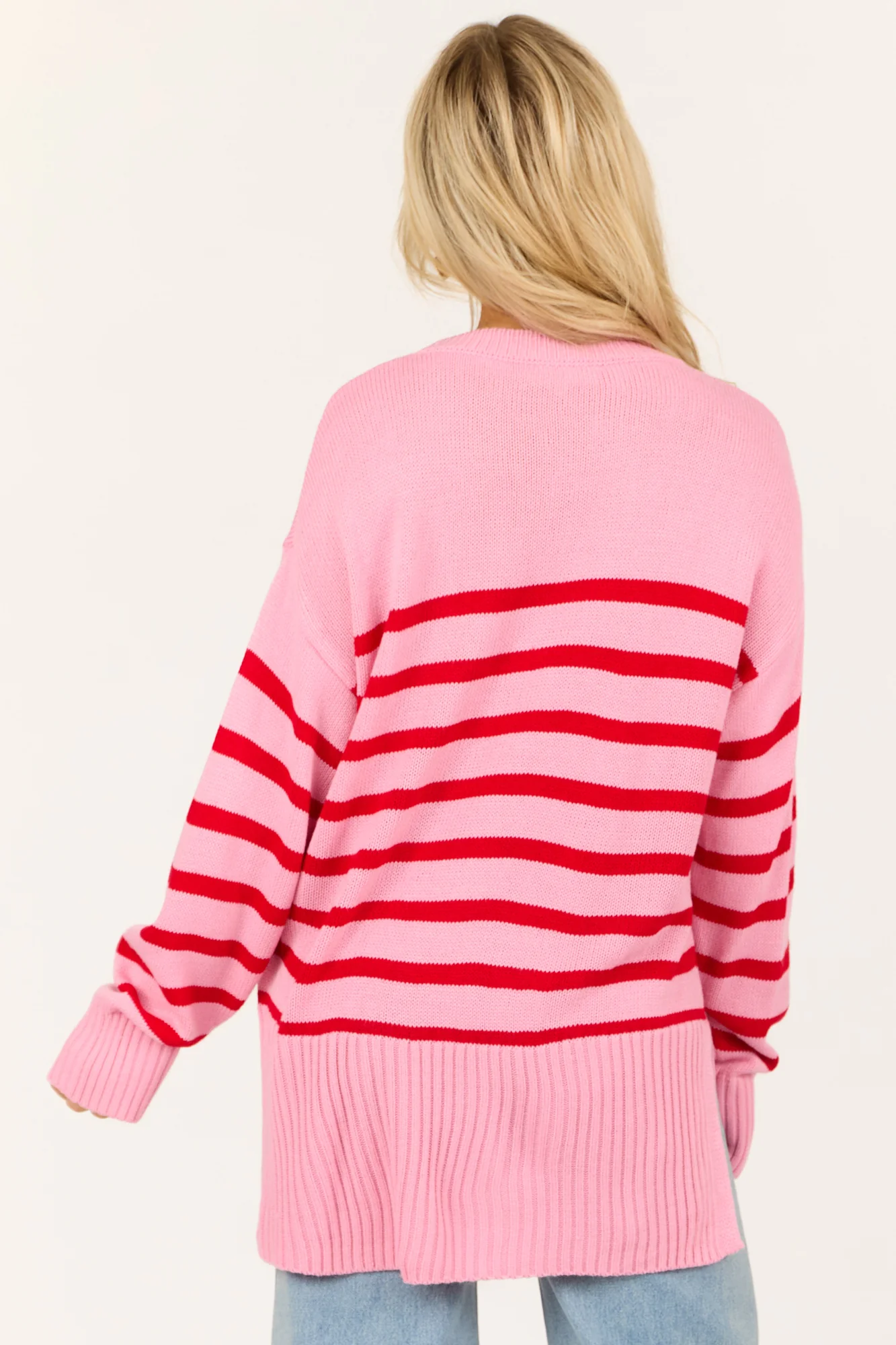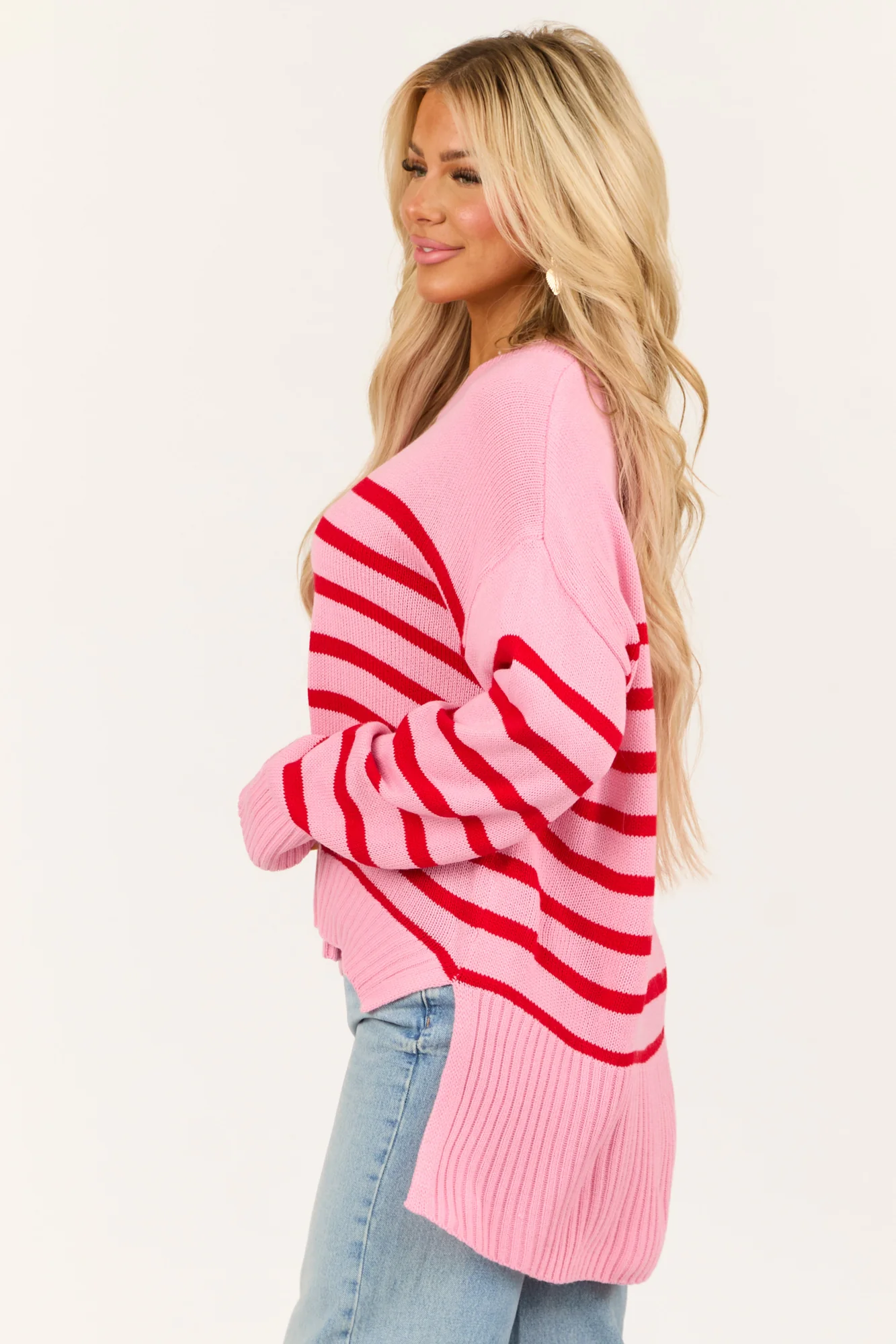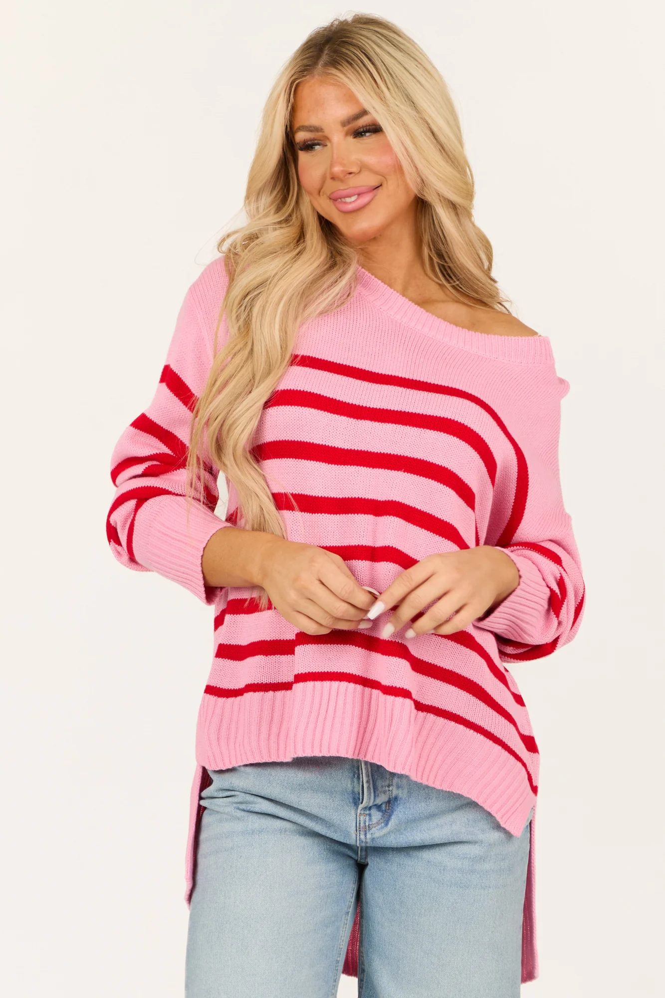 Stay stylish and cozy with our Candy Apple Red Knit Sweater. Crafted from 100% Acrylic, this sweater features a loose fit, stretchy knit, drop shoulder, long sleeves, high-low hemline, and side slits. The ribbed trim adds a touch of elegance. Perfect for the colder months, this sweater is both comfortable and fashionable. Hand wash cold for best care. Available in sizes S, M, and L.