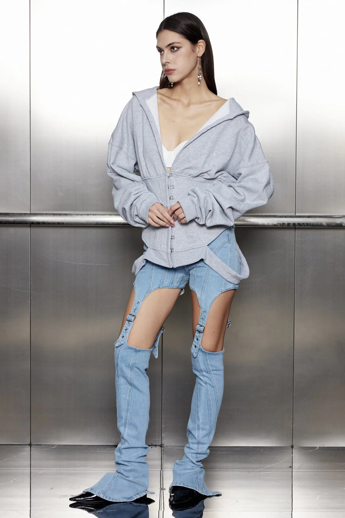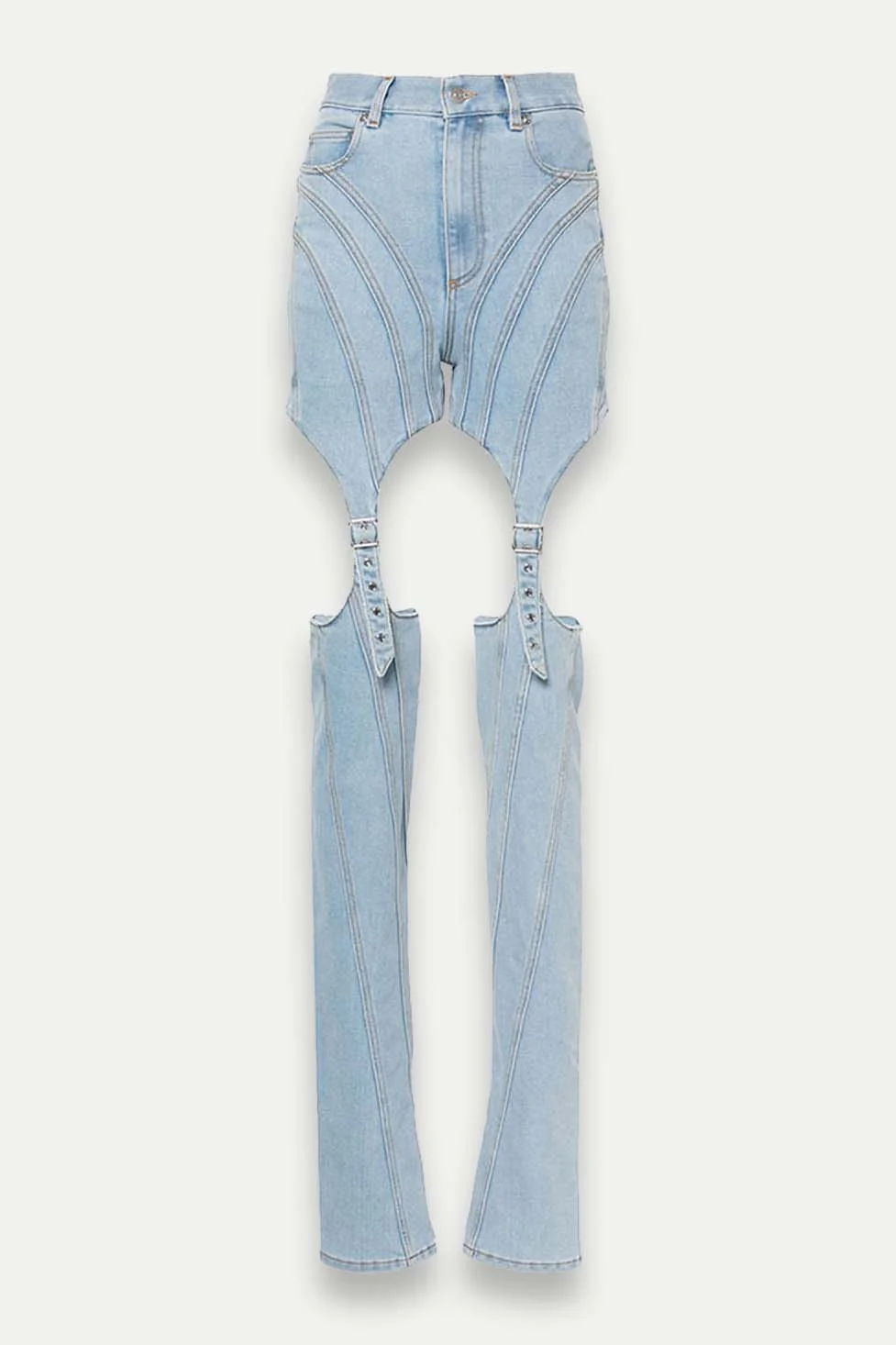 Experience ultimate style and comfort with our Striped Denim Cutout Jeans. These womens pants feature a unique design with cutout detailing for a touch of flair and a striped pattern for a chic look. Made of high-quality 50% Polyester and 50% Cotton material, these non-stretch jeans are perfect for everyday wear. They can be gently machine washed. Please note that color may vary due to image lighting. Elevate your outfit with these trendy pants today!