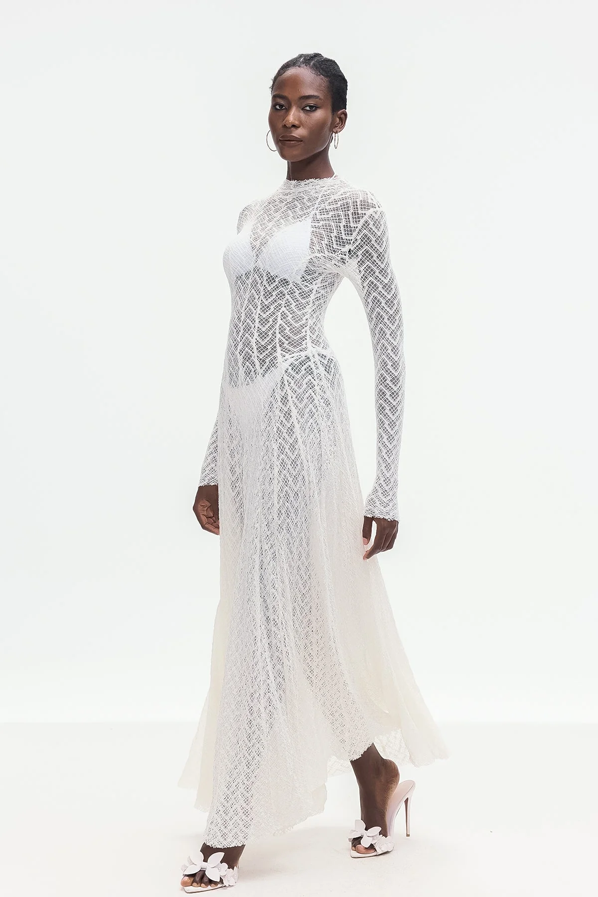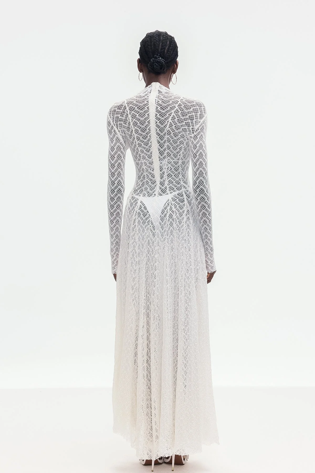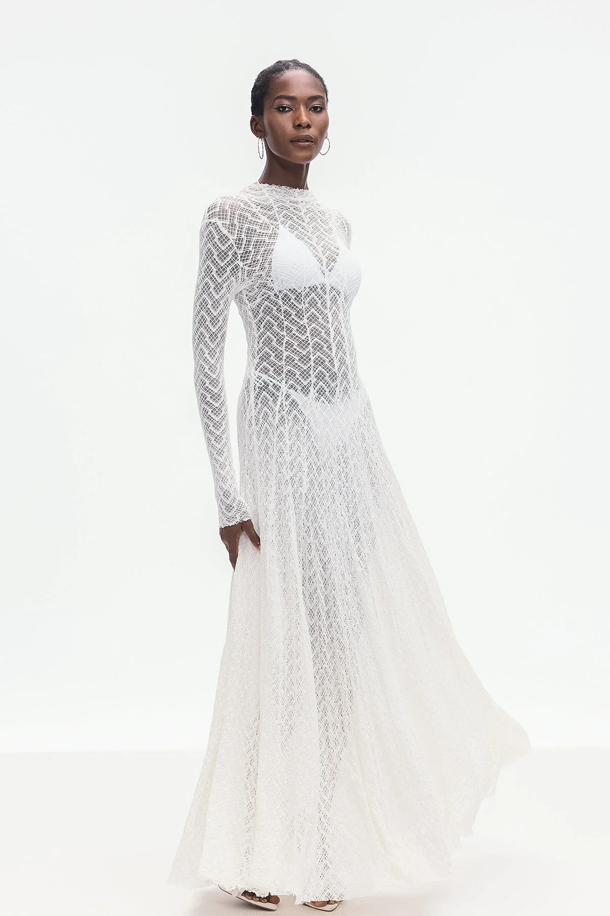 Indulge in the sophistication of the Striped Lace Maxi Dress in White. This exquisite piece marries intricate lace details with a contemporary striped pattern, offering a graceful and stylish ensemble suitable for formal affairs or upscale casual gatherings. Designed for both comfort and elegance, this maxi dress ensures a flawless flow while providing a touch of refinement. The delicate lacework enriches the texture, complemented by the modern stripe design that adds a unique flair. Elevate your wardrobe with this distinctive and chic essential. Please note that the color of the dress may vary slightly due to lighting in images. Stretch Factor: Slight Stretch. Care Instructions: Gentle machine wash.