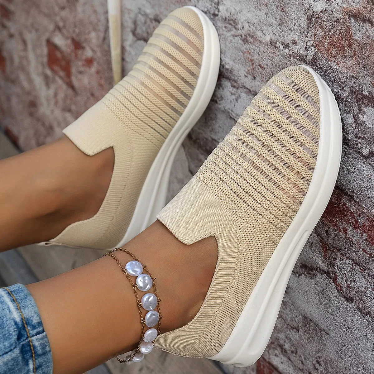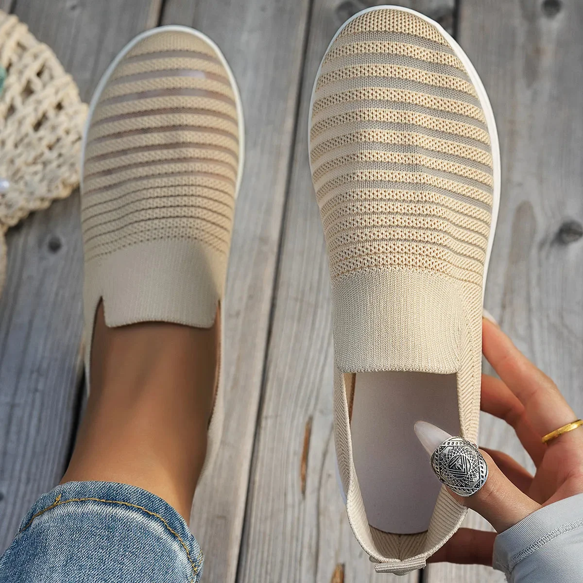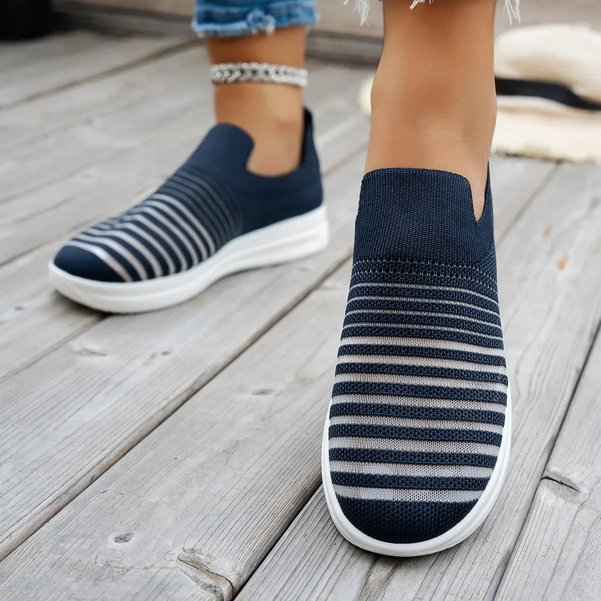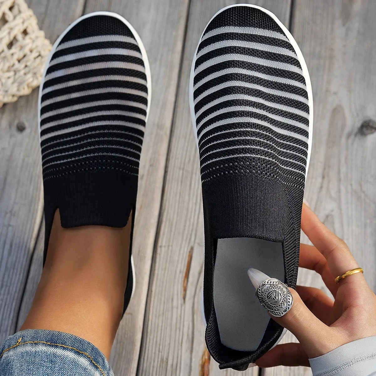These stylish Striped Platform Slip-On Shoes for women are both classy and comfortable. The fit is true to size, so you can simply order your usual size for a perfect fit. The low heels provide a blend of elegance and convenience suitable for various occasions. Crafted with high-quality mesh, PU leather, and rubber, these shoes ensure durability and style. Imported with precise measurements and size conversions, these Slip-Ons are a must-have addition to your footwear collection. Feel confident and chic with these fashionable shoes.
