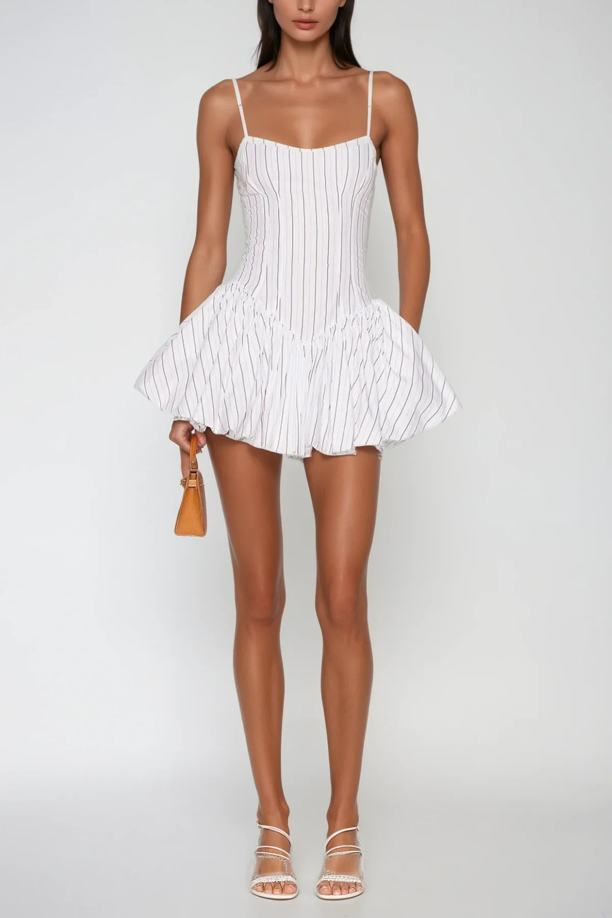 Elevate your wardrobe with the Striped Ruffle Mini Dress in White. This dress combines classic stripes with delicate ruffle detailing, offering a refined yet playful look. Tailored for a flattering fit and mini length, it ensures both style and comfort. Perfect for daytime events or casual evenings, this dress exudes expert design and timeless appeal. Crafted for non-stretch comfort, its easy to care for with a gentle machine wash. Note: Color may vary due to image lighting. Add this elegant piece to your collection today!