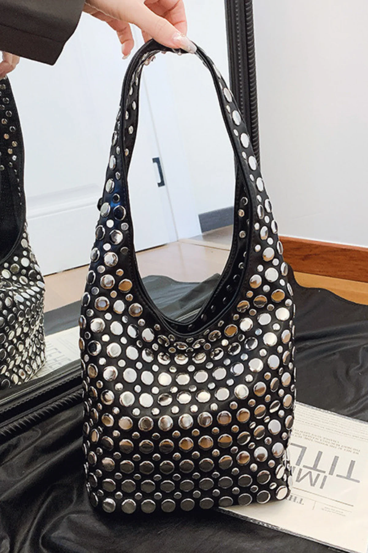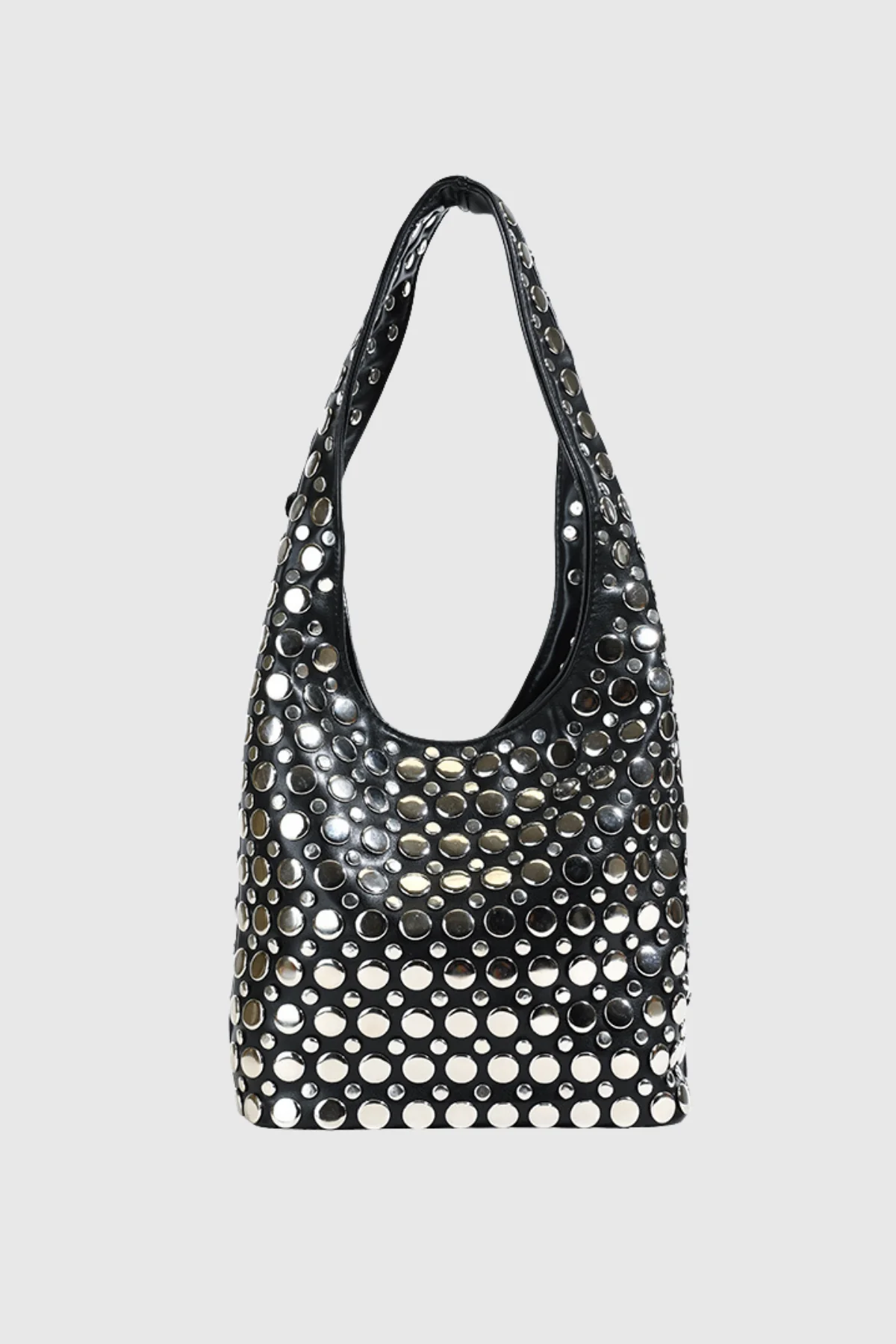 Elevate your style with the Studded Leather Bag in brown. Meticulously crafted from premium leather, this bag boasts a blend of sophistication and durability. The intricate stud detailing not only adds a touch of edginess but also ensures resilience against daily wear. With its spacious design and secure compartments, this bag is perfect for keeping your essentials organized while making a bold fashion statement.