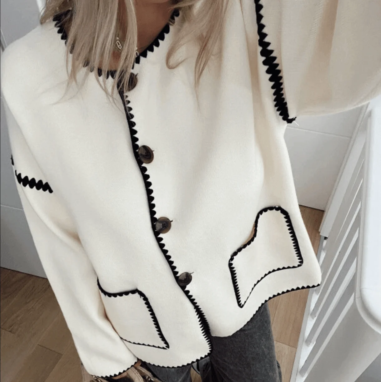 Elevate your style with our versatile Stylish Button-Up Jacket featuring a classic lapel collar and chic button closure. The color contrast detail adds a touch of elegance to any outfit. Perfect for both casual and semi-formal occasions, this jacket is made from high-quality materials for exceptional comfort and durability. Easy to style and care for, this wardrobe essential effortlessly enhances your fashion repertoire. Discover more outfit inspirations on our Instagram @mermaid_way. Enjoy hassle-free size exchanges if needed.