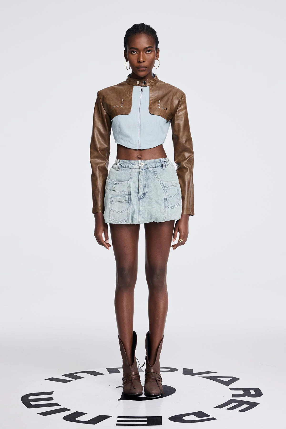 Experience timeless style with the stylish Deconstructed Leather Jacket . Crafted by industry experts, this jacket is made of high-quality leather for durability and luxury. The unique deconstructed design elevates any outfit, leaving a lasting impression. Transform your wardrobe with this must-have piece. Material: 50% Polyester, 50% Cotton. This non-stretch jacket is easy to clean with a gentle machine wash. Please note that the color may vary due to lighting in images.