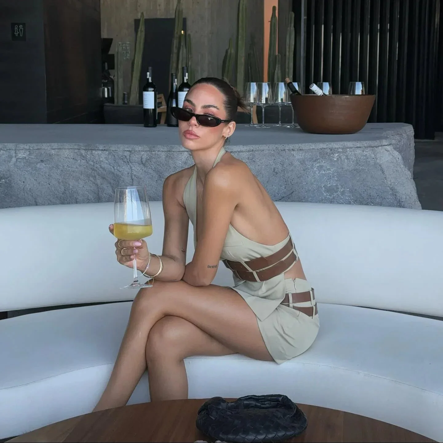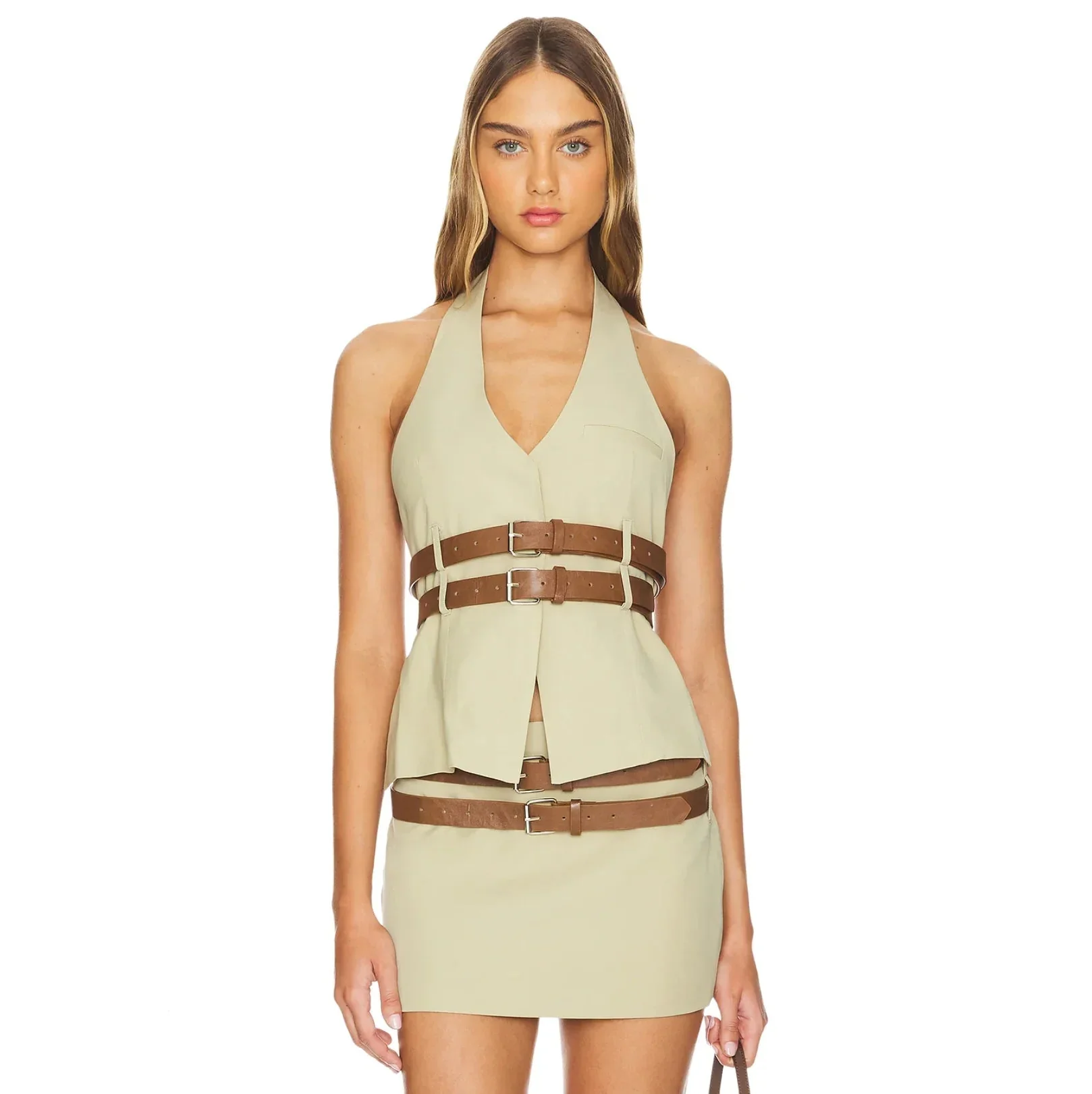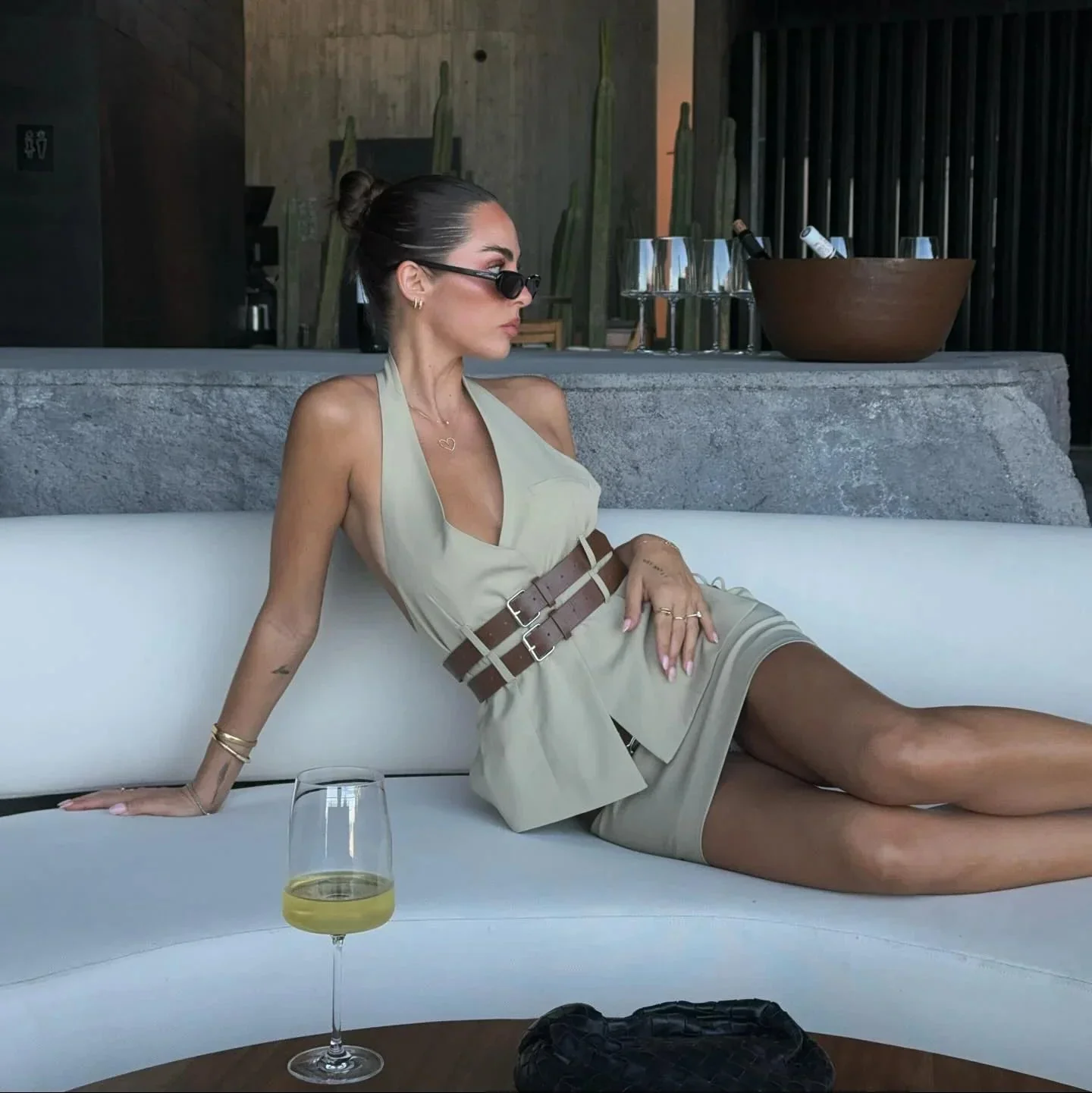 Indulge in individuality and effortless style with the Heartbreaker Belted Two-Piece Set. Crafted from premium poplin fabric, this set includes three detachable belts in rich faux leather. Whether you wear them all together, separately, or not at all, this set offers versatility. The fitted silhouette and halter neckline exude elegance, perfect for layering with a blazer or making a bold statement. Embrace trendsetting fashion with this set that includes a top and skirt detailed with four removable belts. Make a statement everywhere you go! For more style inspiration, visit @mermaid_way on Instagram. Enjoy a complimentary size exchange if your item doesnt fit as expected.