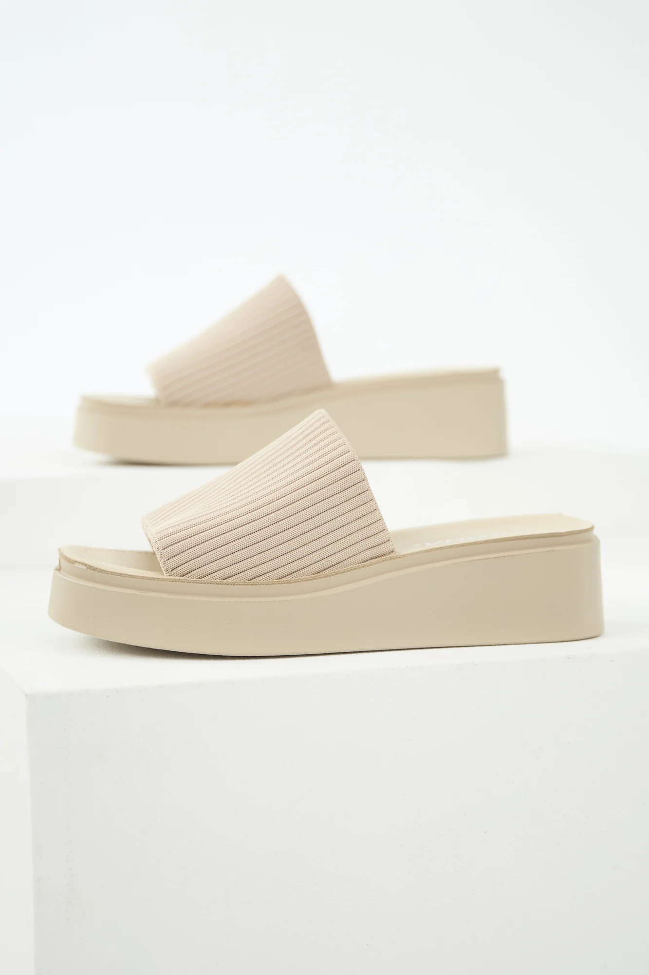 Elevate your style with these taupe platform sandals featuring a non-stretchy woven construction and cushioned insole for all-day comfort. The open toe design and rounded toe offer a trendy look that pairs perfectly with any outfit. Walk with confidence on the 1-inch platform and 2-inch heel. Imported. Available in sizes 5.5 to 8.5.