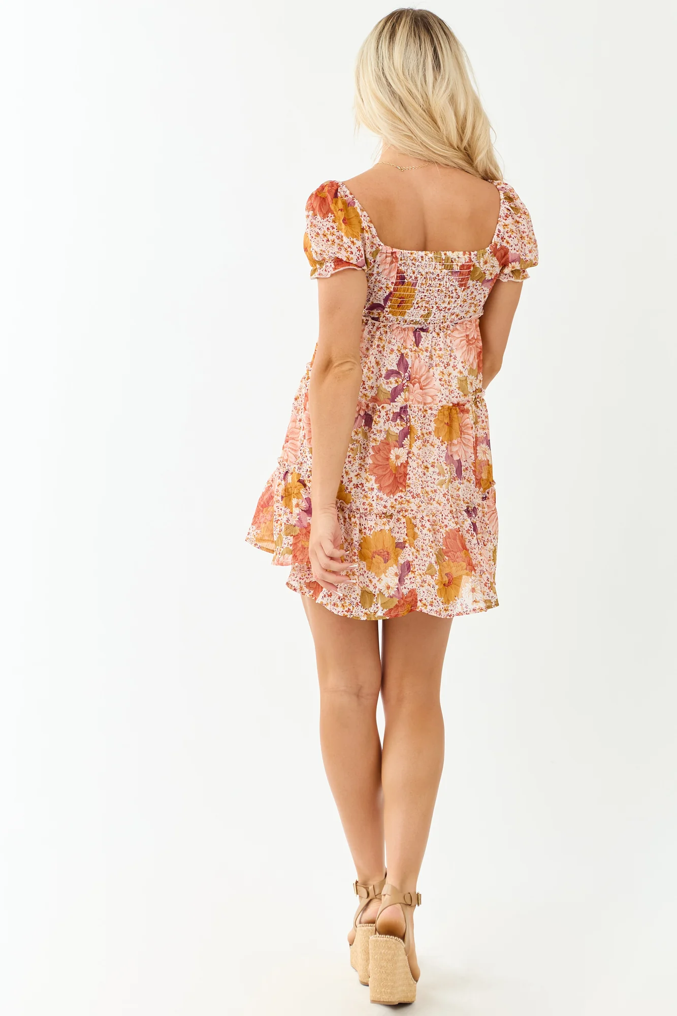 Indulge in the delightful terracotta floral magic with our charming Mini Dress. Adorned with playful puff sleeves and a vibrant floral print, this dress is perfect for both sunny days and sweet evenings. Cut for a comfortable fit, it features stretchy smocked details, elastic neckline, cuffs, and waistband. The tiered skirt, lined design, and ruffle trim add an extra touch of elegance. Crafted from 100% Polyester, this imported dress is a must-have for your wardrobe. Get yours now and experience the joy of summer fashion!