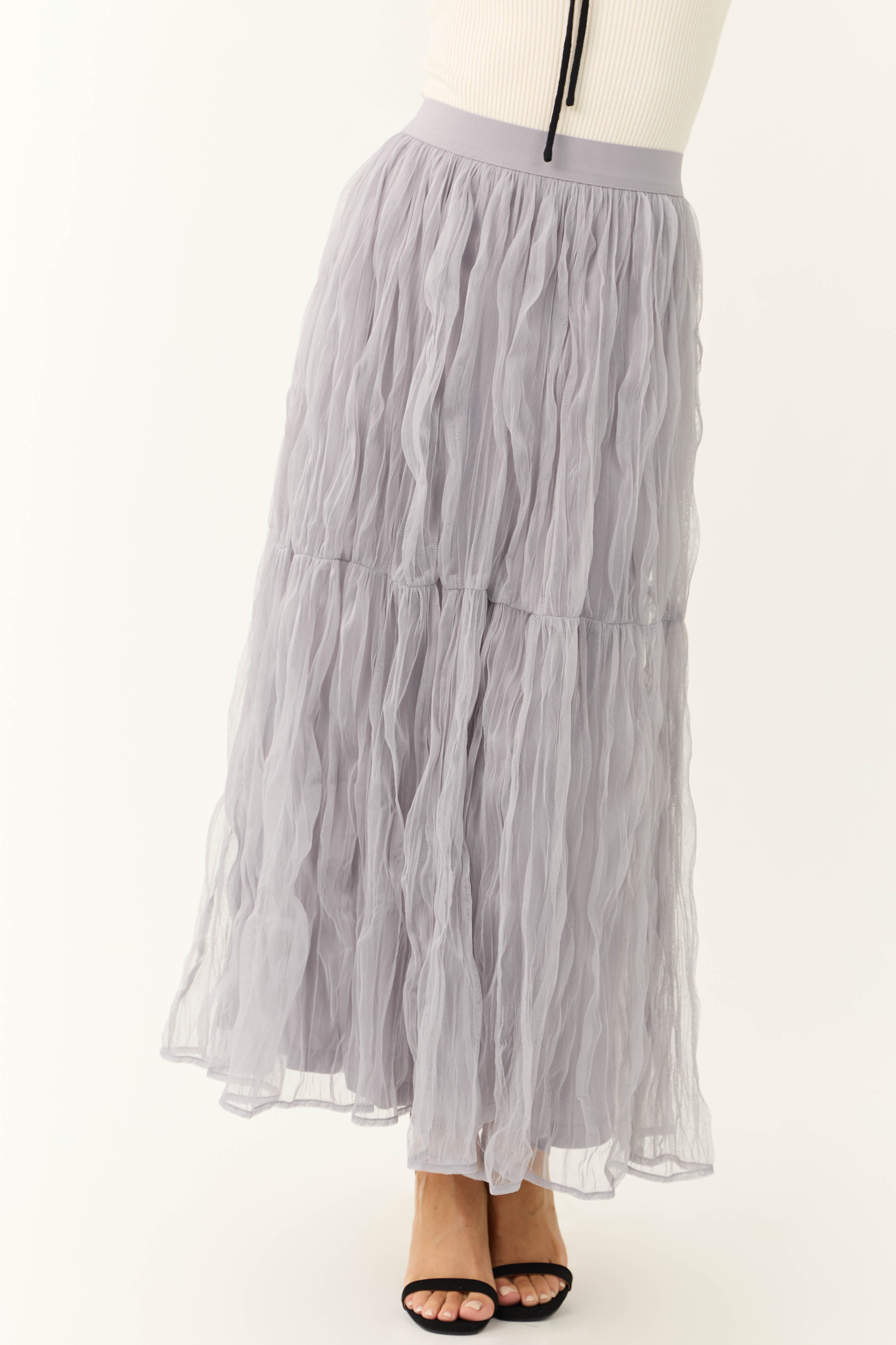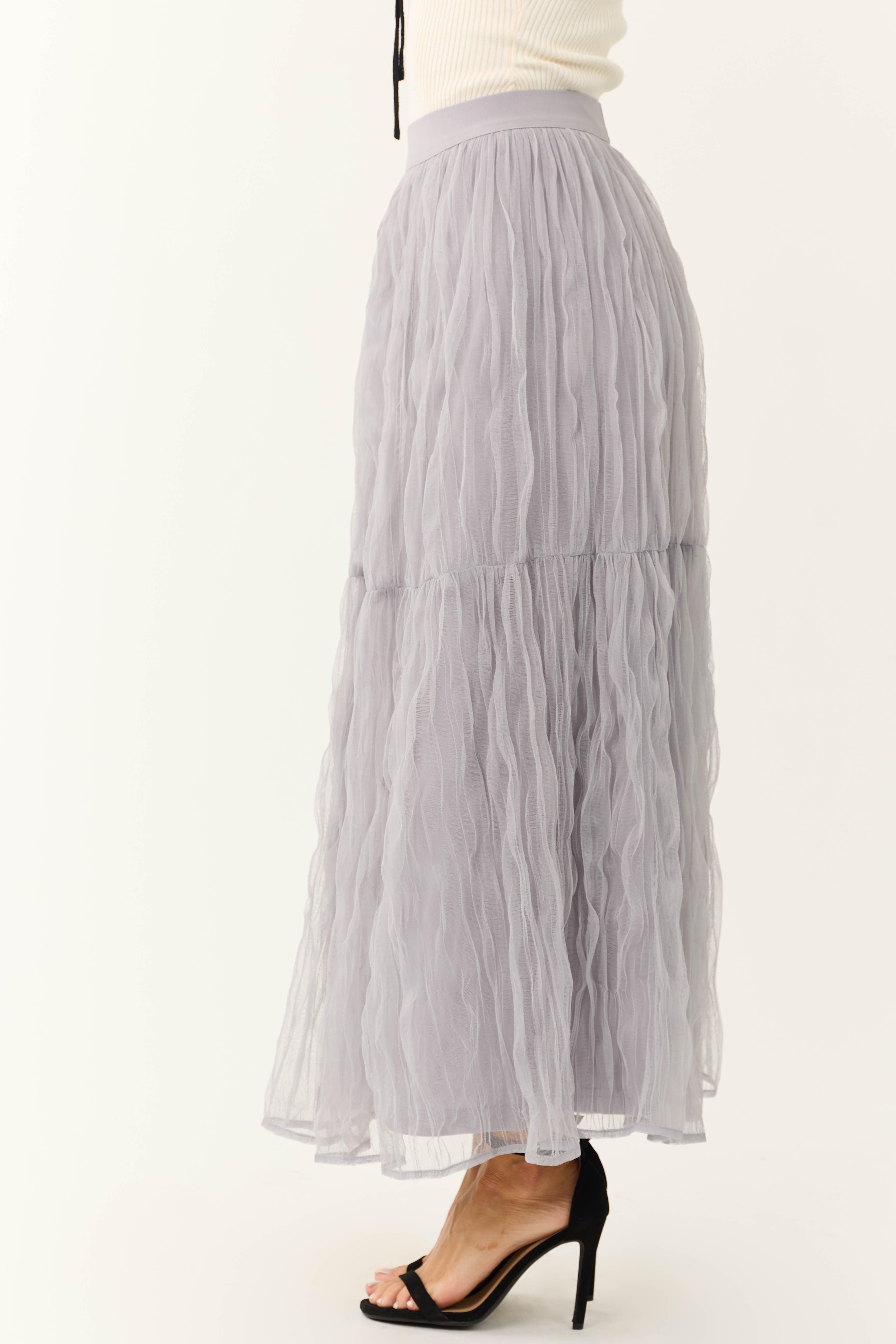 Be effortlessly elegant with our lavender maxi skirt made of stretchy mesh. The tiered plisse design flows gracefully for sizes S, M, and L (Waist: 26-38″). A versatile piece suitable for casual or date night outfits with a lined, banded waistband. Hand wash recommended.