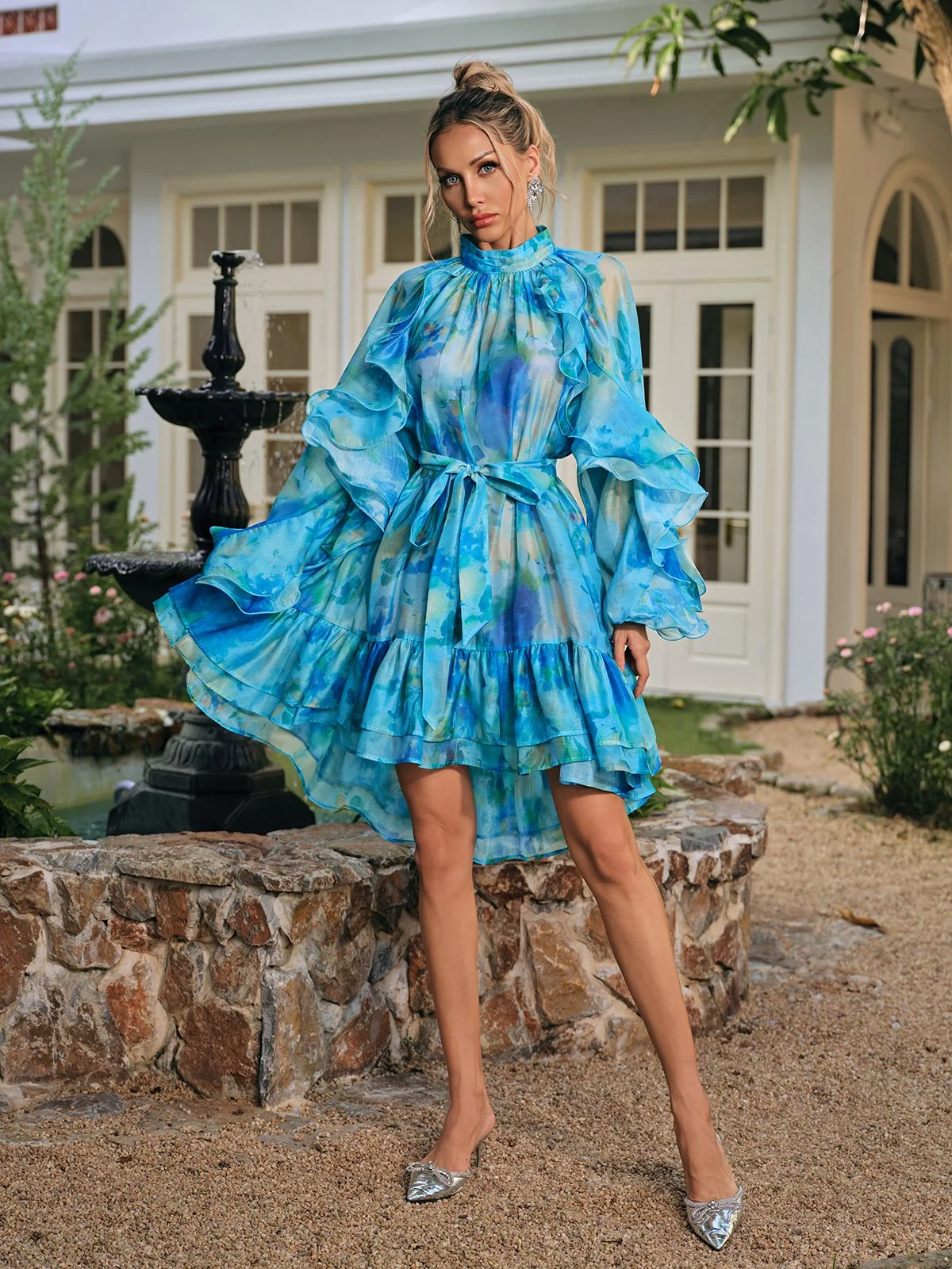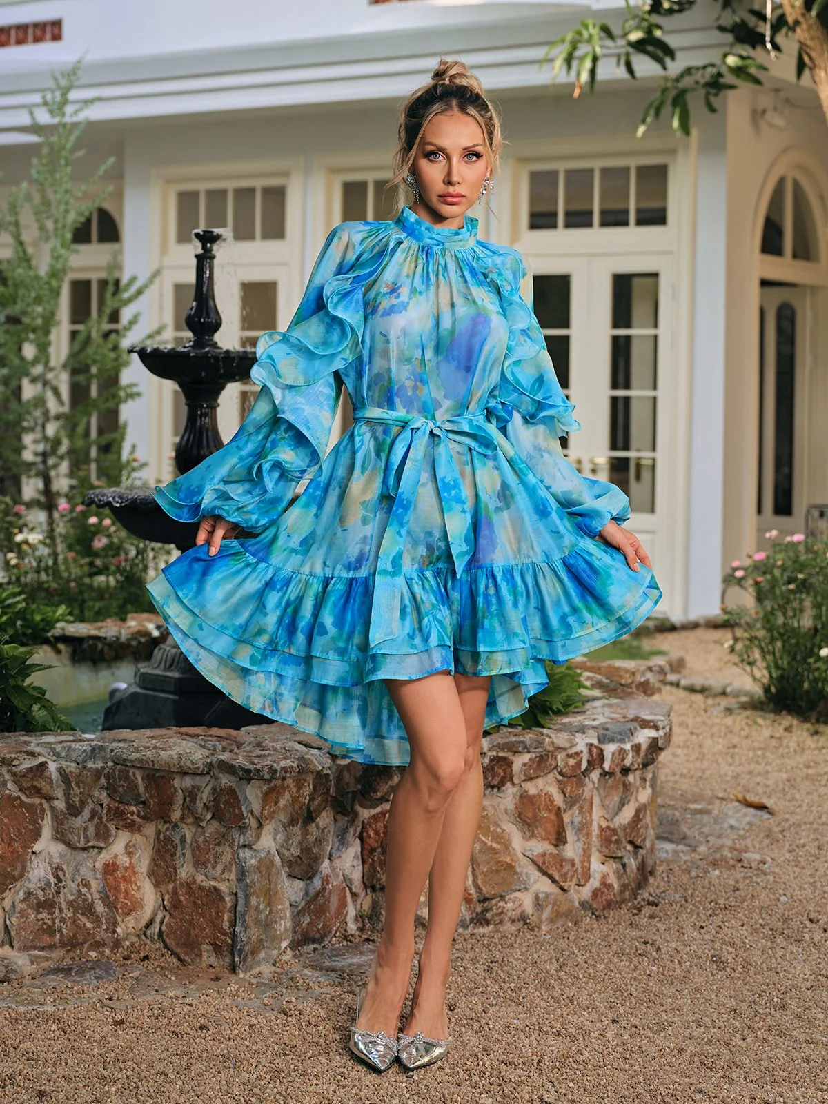 Elevate your style with our Tiered Printed Mini Dress featuring charming ruffle details and a flattering tiered silhouette. Experience movement and flair in every step while exuding confidence and chic vibes. This dress is perfect for daytime outings or casual gatherings, ensuring a standout look wherever you go. Crafted from 100% Polyester with a slight stretch for comfort and has a variety of sizes available – S, M, L, and XL. Care instructions: Dry clean only. Please note, color may vary due to lighting. Model wears size S.