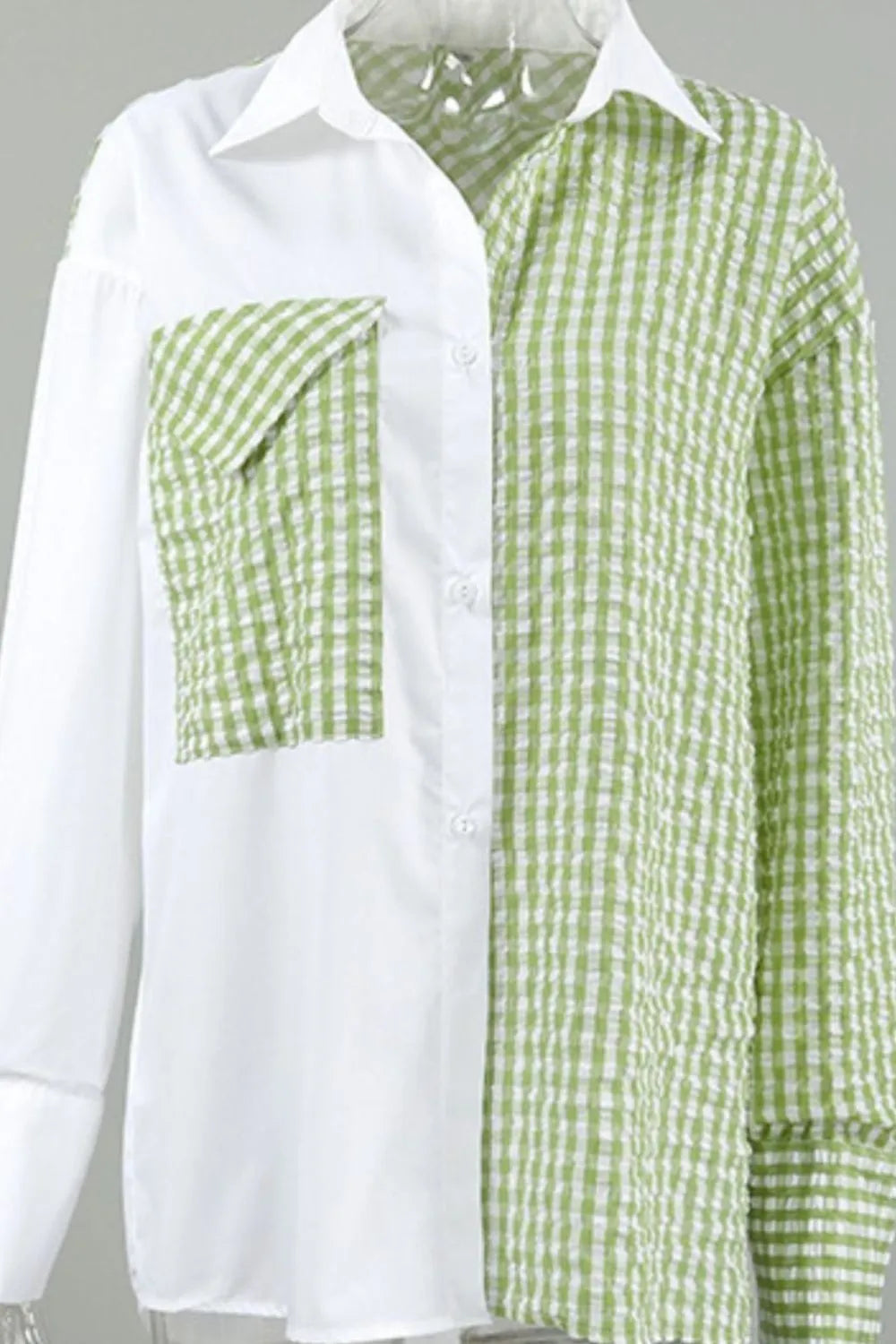 Upgrade your wardrobe with our elegant Two-Tone Plaid Button Down Long Sleeve Shirt . Crafted from 80% polyester and 20% cotton for comfort and durability. This shirt features a buttoned front, pocket detail, and a sheer yet opaque finish. Machine wash cold and tumble dry low for easy care. Available in sizes S, M, and L, this classic shirt is perfect for any occasion.