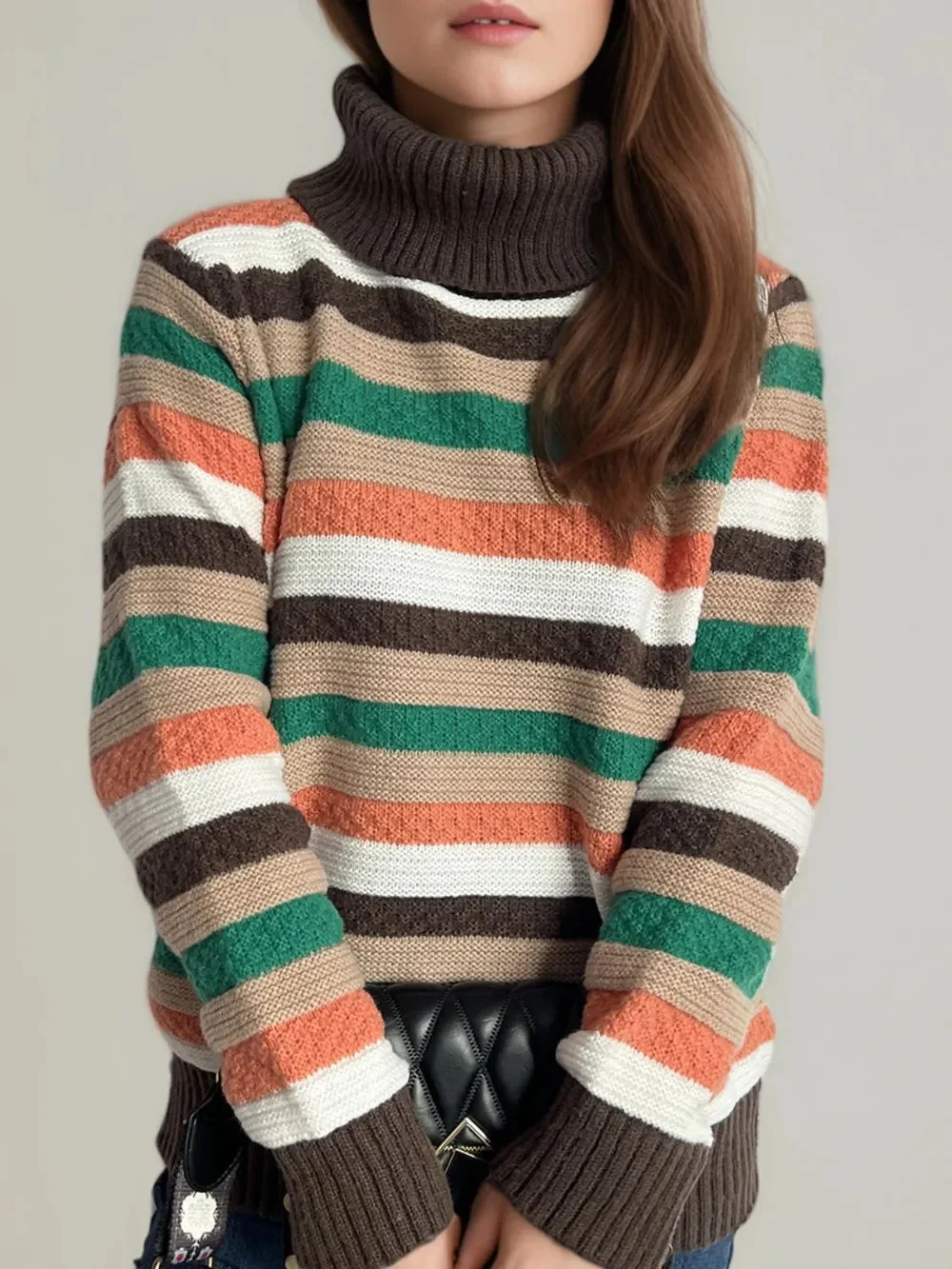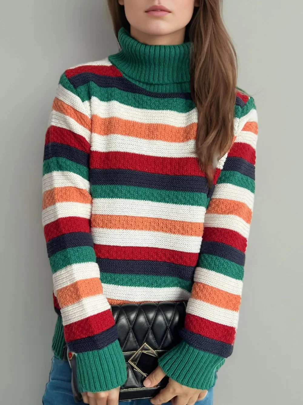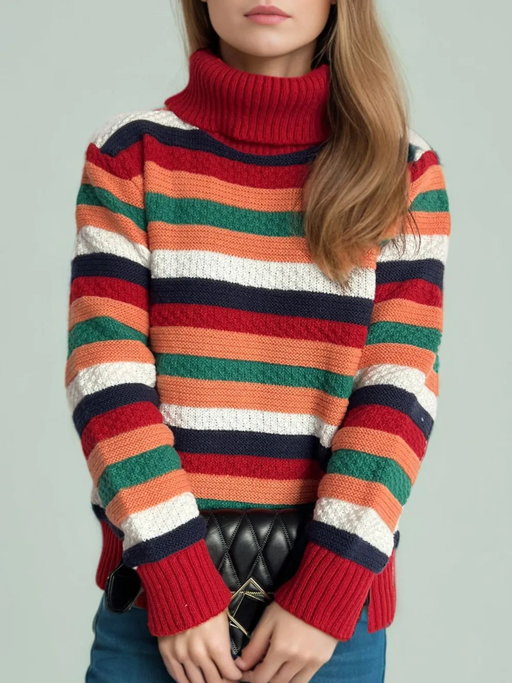 Experience ultimate comfort and style with our Turtleneck Long Sleeve Sweater featuring chic contrast stripes. Made with a blend of 65% polyester and 35% acrylic, this sweater offers a basic style with a slight stretch for a perfect fit. Care instructions include machine wash cold and tumble dry low. Elevate your winter wardrobe with this imported sweater. Available in various trendy colors like Pastel Yellow, Deep Red, Dark Green, Chocolate, Black, and Scarlet. Find your perfect size with our one-size-fits-most option. Stay cozy and fashionable all season long!