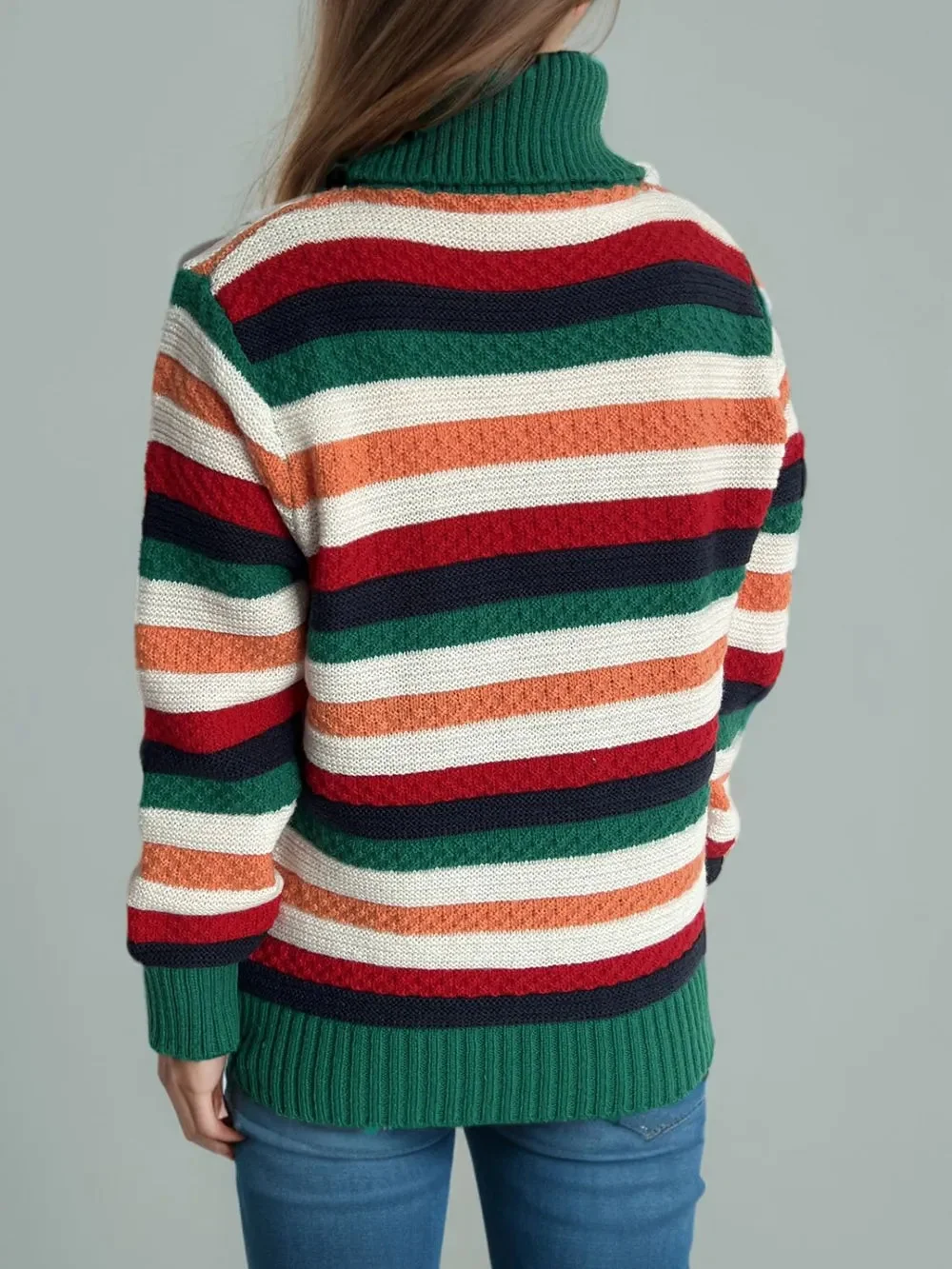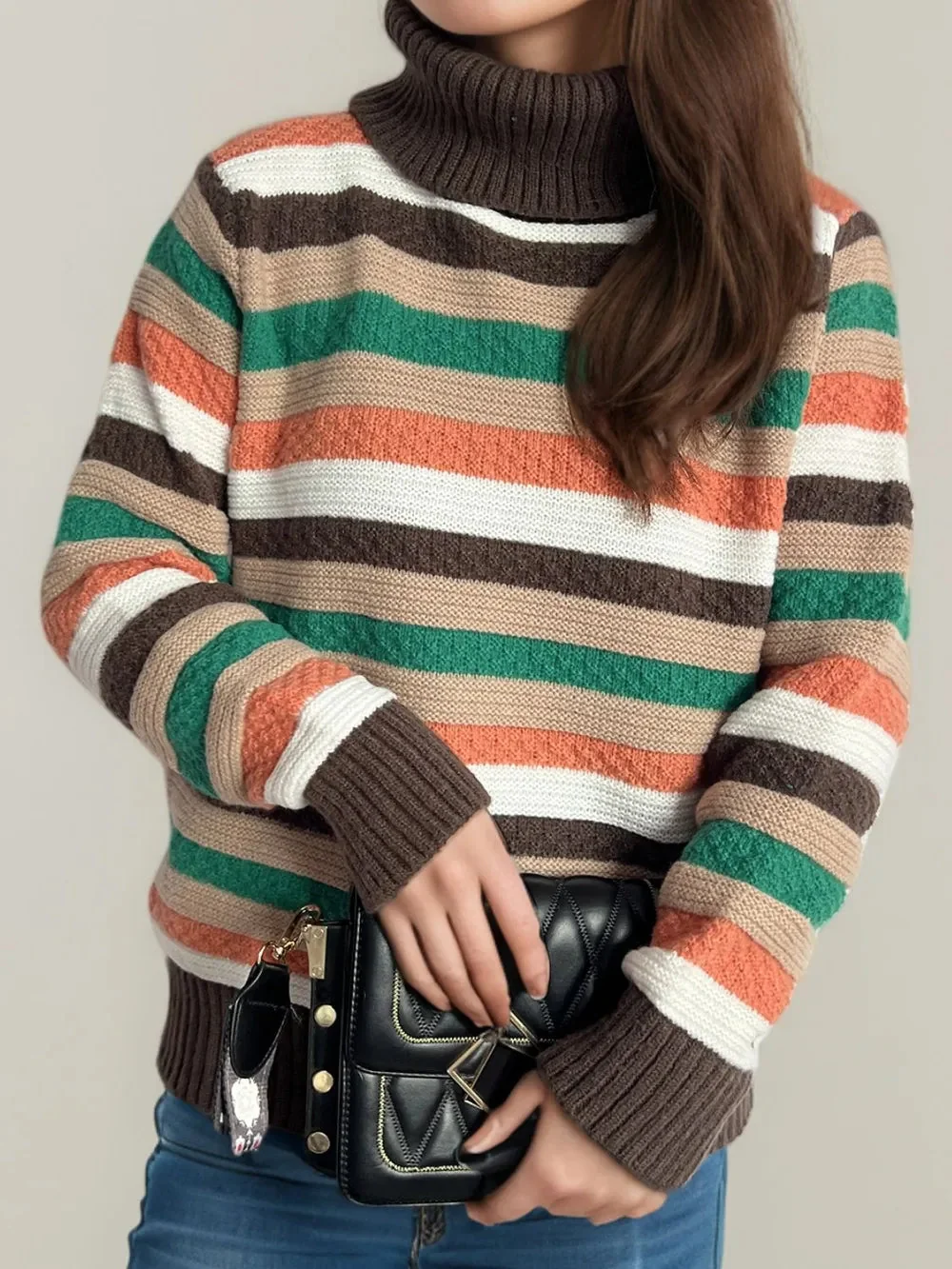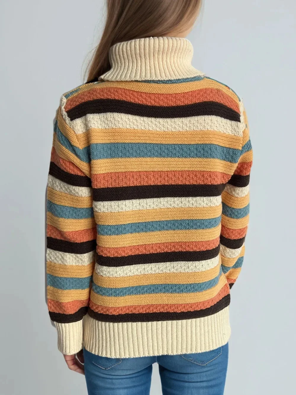 Experience ultimate comfort and style with our Turtleneck Long Sleeve Sweater featuring chic contrast stripes. Made with a blend of 65% polyester and 35% acrylic, this sweater offers a basic style with a slight stretch for a perfect fit. Care instructions include machine wash cold and tumble dry low. Elevate your winter wardrobe with this imported sweater. Available in various trendy colors like Pastel Yellow, Deep Red, Dark Green, Chocolate, Black, and Scarlet. Find your perfect size with our one-size-fits-most option. Stay cozy and fashionable all season long!