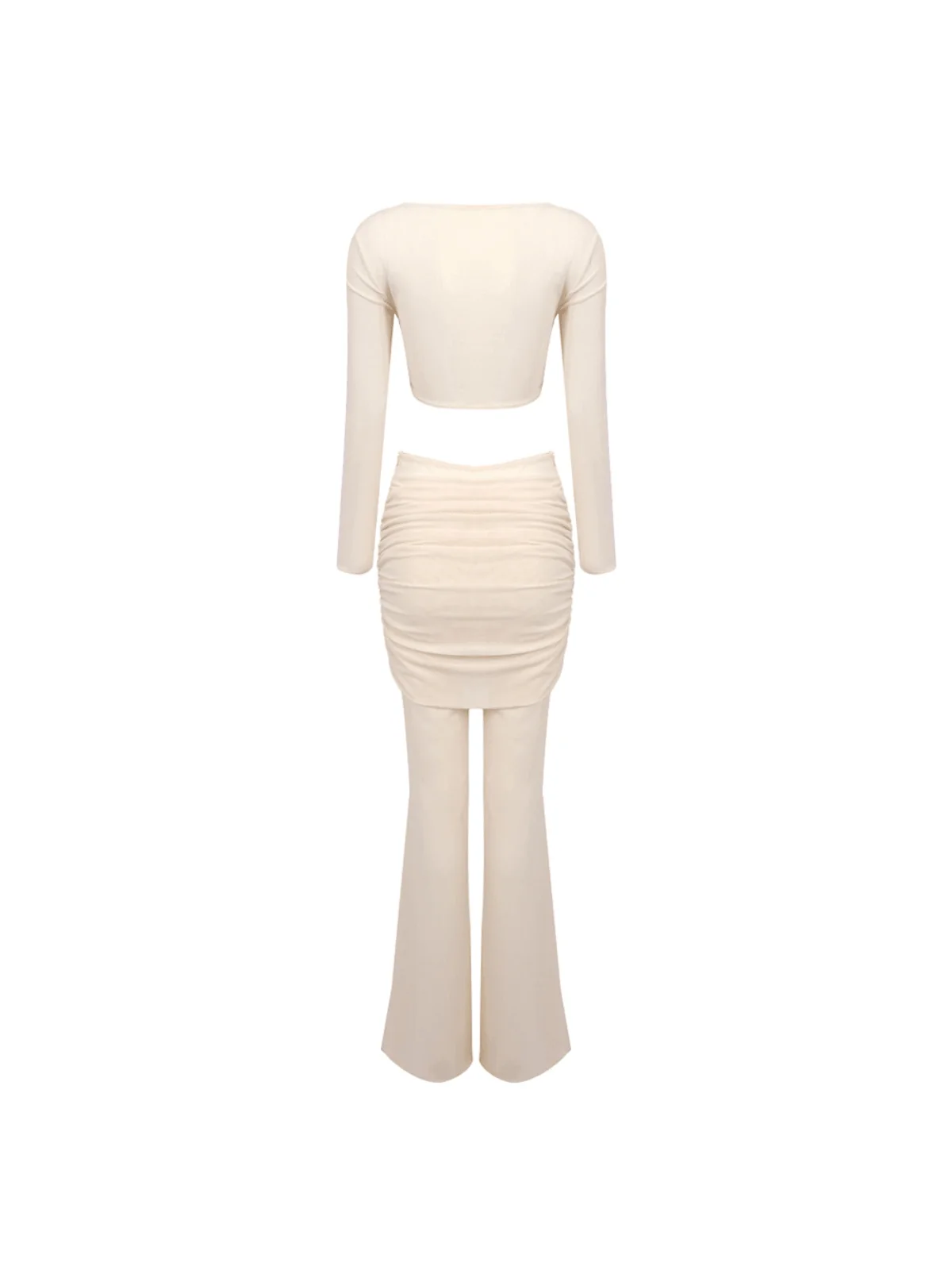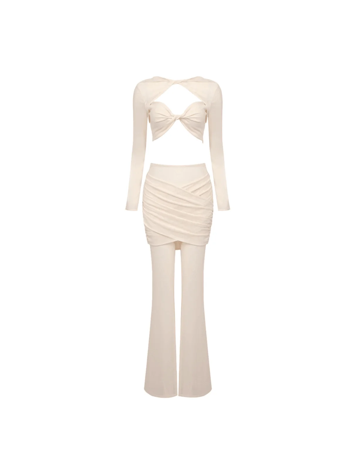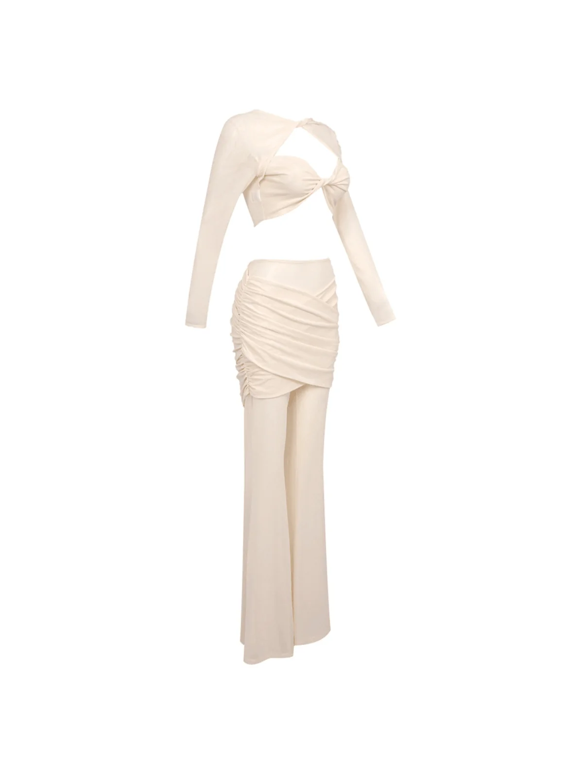 Elevate your wardrobe with the timeless elegance of the Twisted Mesh Pants Set in white. This stylish attire by Li Fu blends sophistication with comfort, featuring a twist mesh design for a touch of edginess. Crafted from high-quality 100% polyester with a slight stretch factor, these pants offer a flattering fit and breathability, making them perfect for all-day wear. The invisible zipper opening on the side ensures easy wear. Ideal for various occasions like parties, this set exudes charm and style. Please note that color may vary slightly due to lighting. Machine wash gently for easy care. Enhance your look with this must-have ensemble today!