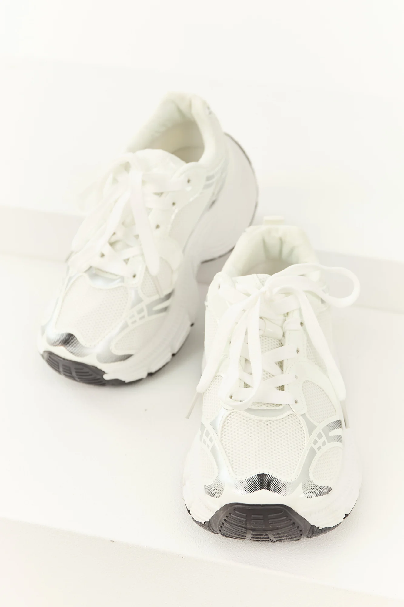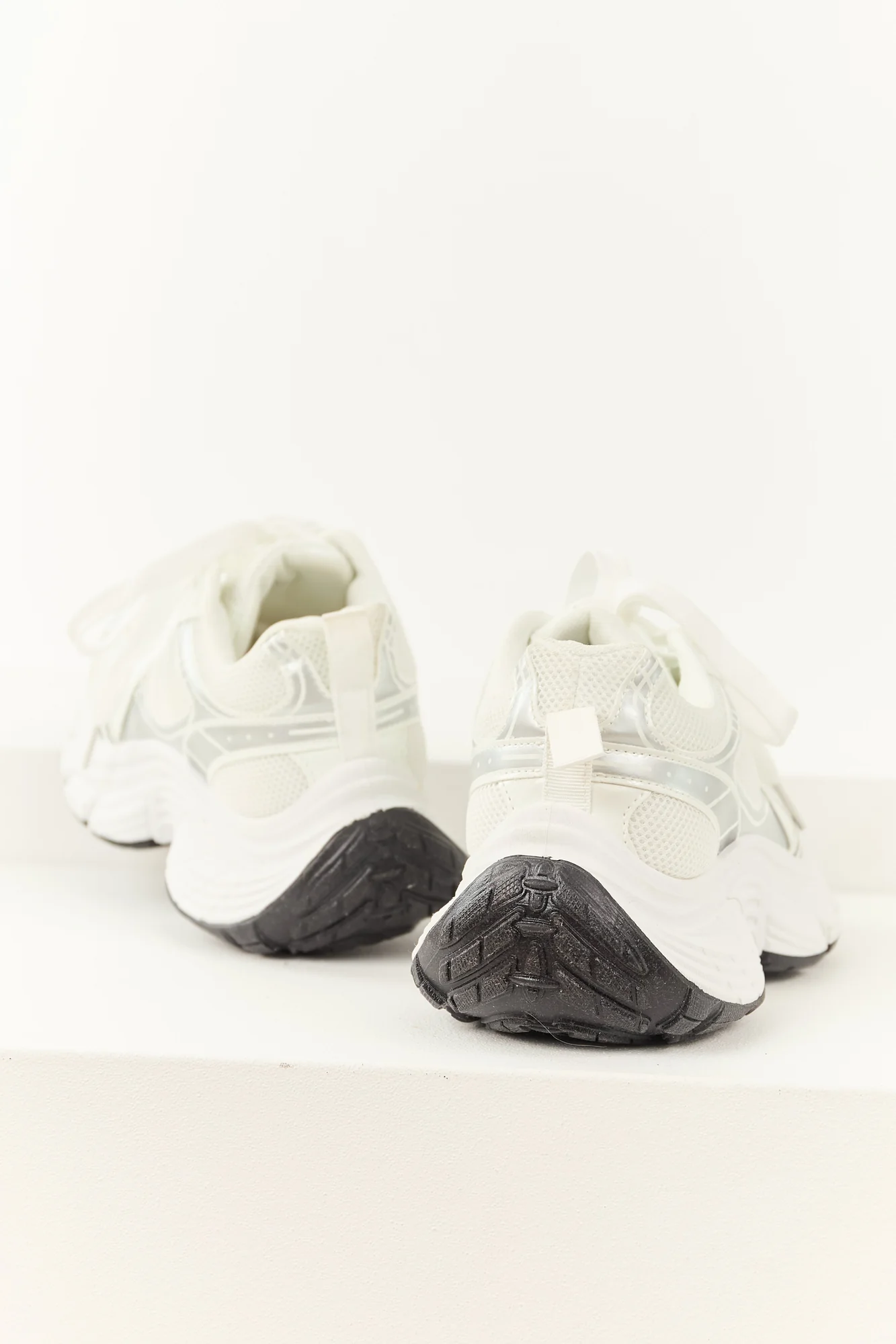 Step up your style with our trendy Two Tone Mesh Chunky Sneakers in White/Gray. These sneakers feature a chunky sole, breezy mesh material, and a cool two-tone contrast in Black and Heather Grey. Designed with a rounded toe and a comfortable 3-inch platform, these sneakers are perfect for any casual occasion. The circumference measures 10 inches. Available in sizes 5 to 10. Complete your look with these stylish sneakers!