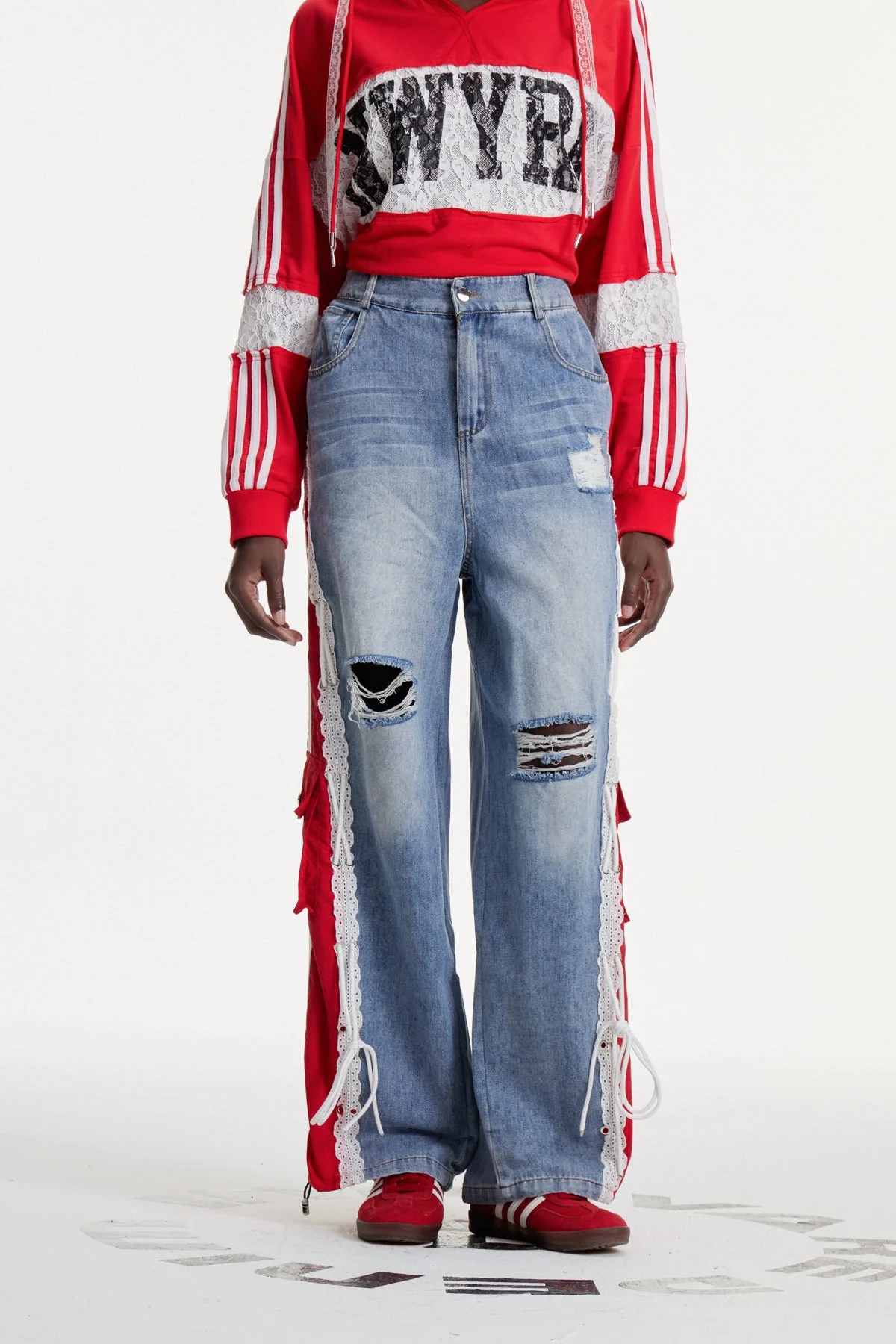 Discover the perfect blend of contemporary design and expert craftsmanship with these Urban Edge Distressed Striped Jeans. Featuring bold stripe detailing and strategically placed distressed elements, these jeans offer a modern, edgy look without compromising on comfort and durability. Elevate your everyday wardrobe with a distinct urban flair that pairs effortlessly with casual or statement pieces. The non-stretch fabric ensures a clean, gentle machine wash. Please note that the color may vary due to lighting conditions in images.