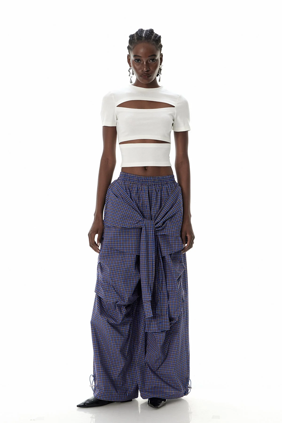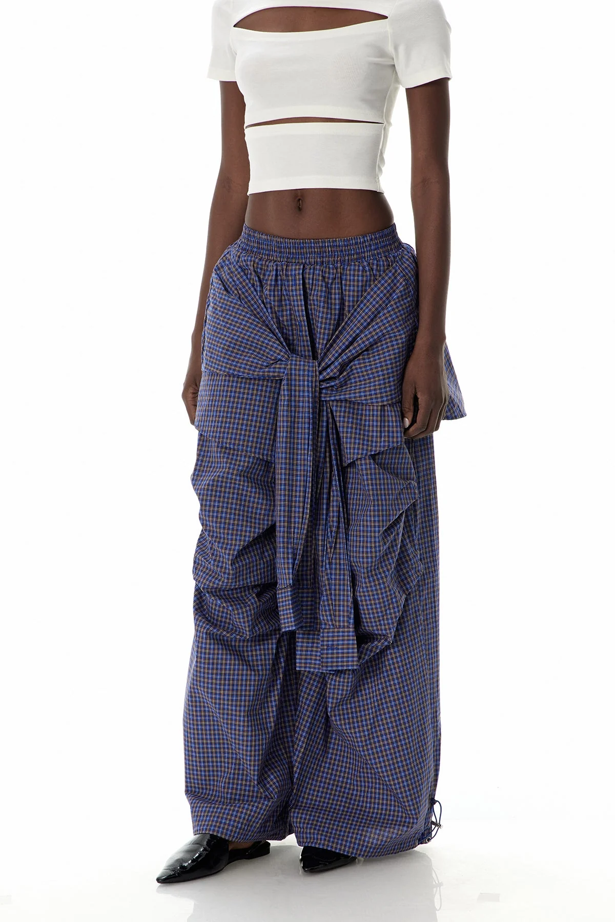 Elevate your wardrobe with the Urban Edge Grid Tie-Up Pants in Blue . These precision-tailored pants feature a modern grid pattern, a comfortable tie-up waist for a customizable fit, and versatile styling that effortlessly transitions from work to play. Enjoy support and style all day long with these non-stretch pants. The color may vary slightly due to lighting. Experience the perfect blend of refinement and contemporary flair.