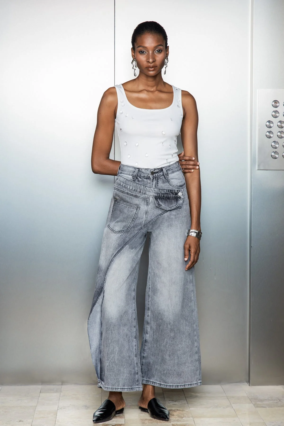 Elevate your street style with these Urban Grey Asymmetric Fringe Jeans. Designed with bold asymmetric cuts and distinctive fringe details, these jeans offer a unique silhouette that combines edgy aesthetics with expert tailoring. Crafted for fashion-forward individuals who appreciate innovative denim, these jeans are a must-have addition to your wardrobe. The non-stretch fabric provides a clean look, while the gentle machine wash care makes maintenance easy. Embrace the urban edge with these statement jeans that are sure to turn heads.