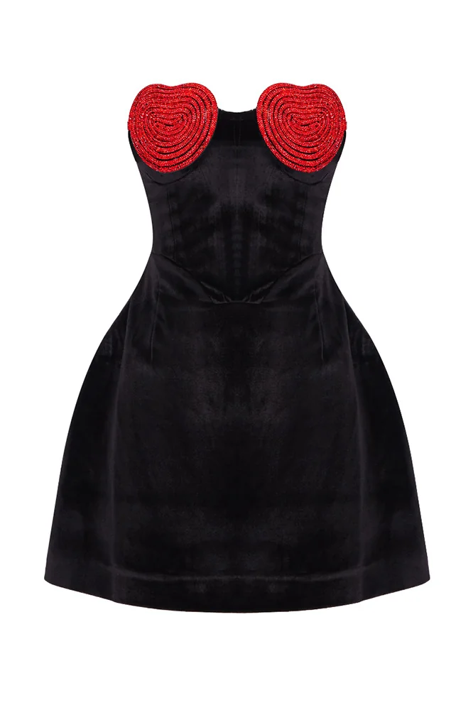 This exquisite dress, made from a luxurious velvet fabric, features a crystal embellished heart bust for a touch of elegance. Crafted from a polyester blend, it comes with a boned bodice, fully lined for durability. The hidden back zip closure ensures a seamless look. Expertly designed and suitable for various occasions, this dress is easy to care for and runs true to size. Ensure a perfect fit by referring to our size chart. Elevate your wardrobe with this stunning piece!