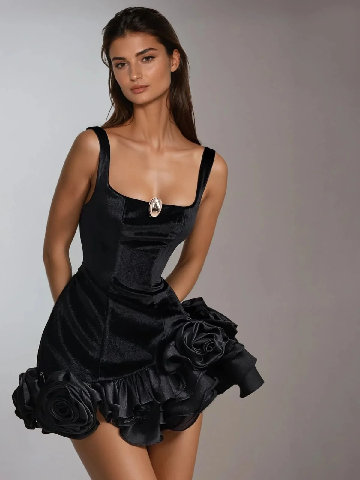 Elevate your style with the luxurious Velvet Square Neck Floral Mini Dress. Crafted from soft velvet, this dress features a delicate floral pattern that exudes feminine charm. The modern silhouette, with a flattering square neckline and mini length, is perfect for special occasions or a night out. Step into elegance and effortlessly turn heads with this standout dress. Made of 100% polyester with slight stretch for comfort. Dry clean only. Please note: color may vary due to lighting. Model is wearing size S.