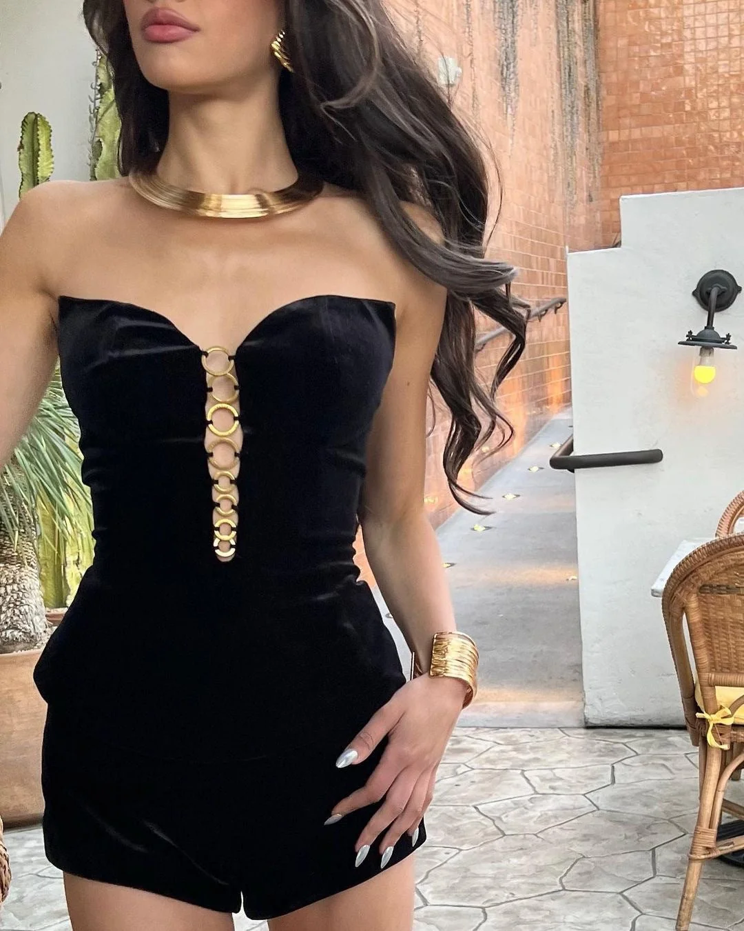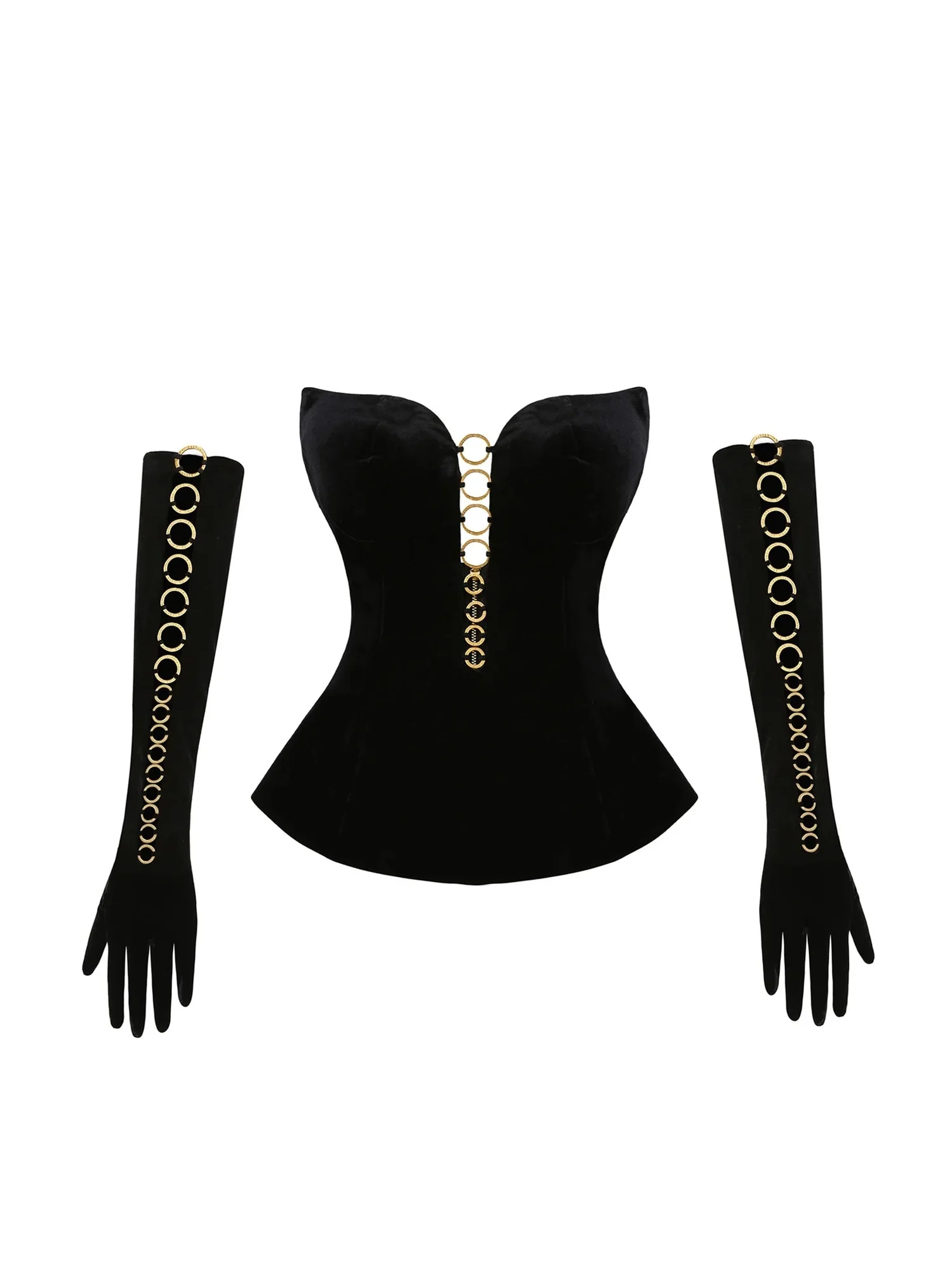 Indulge in luxury with our Velvet Two-Piece Ring Set featuring a stunning metallic finish. This set includes gloves for added elegance. Care instructions: Gentle dry clean only. Colors may vary due to lighting. The actual product color is best represented in images without models. True to size fit according to our size chart. Refer to sizing for the perfect fit. Avoid sizing up or down for the ideal look.