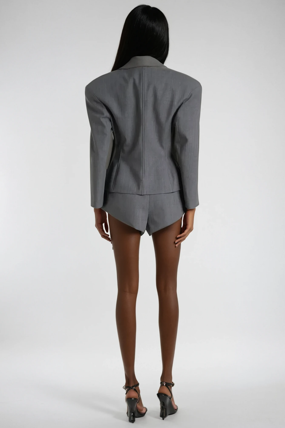 Versatile Crew Neck Button Pants Set in Grey | Innovare Denim