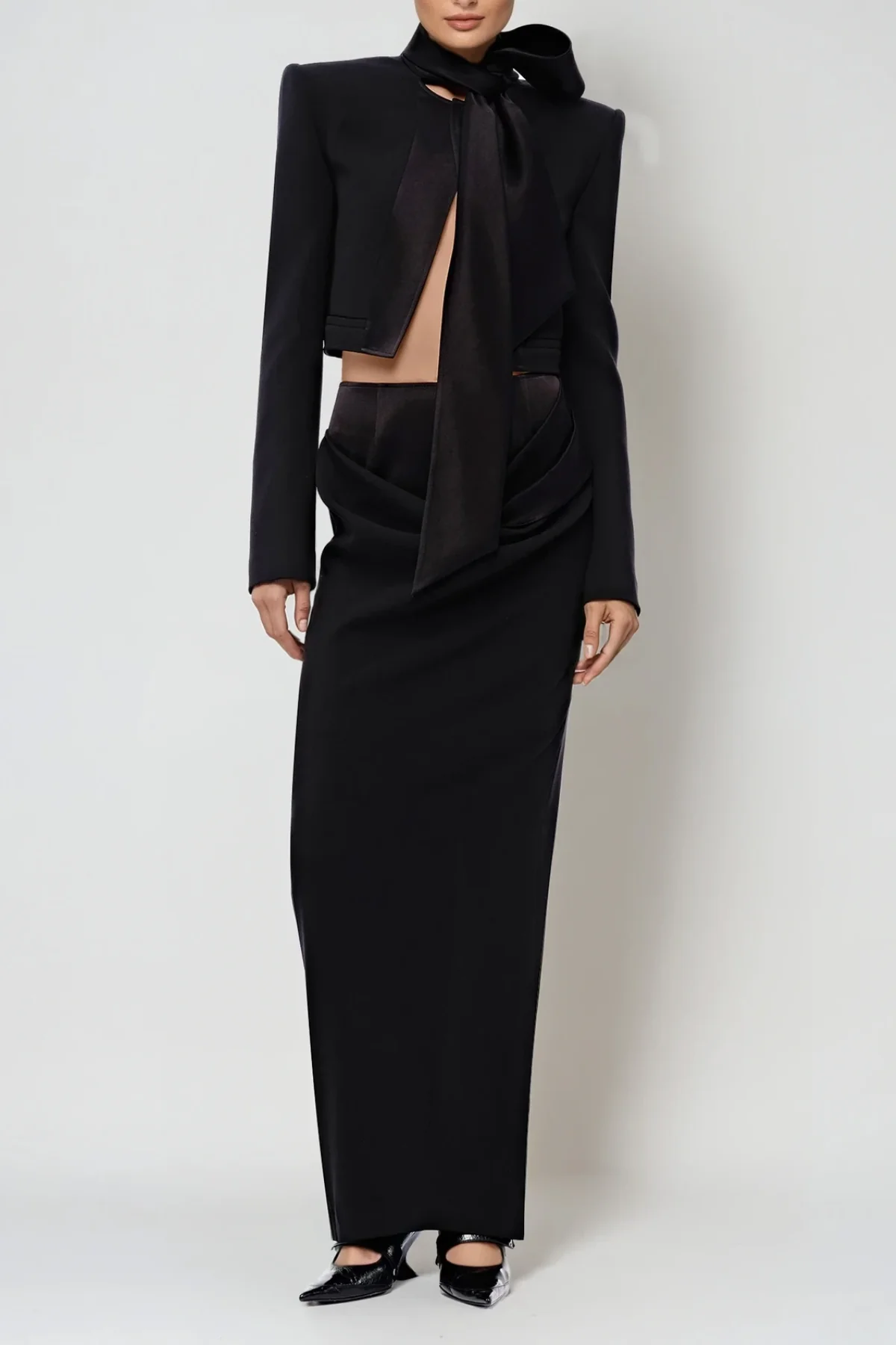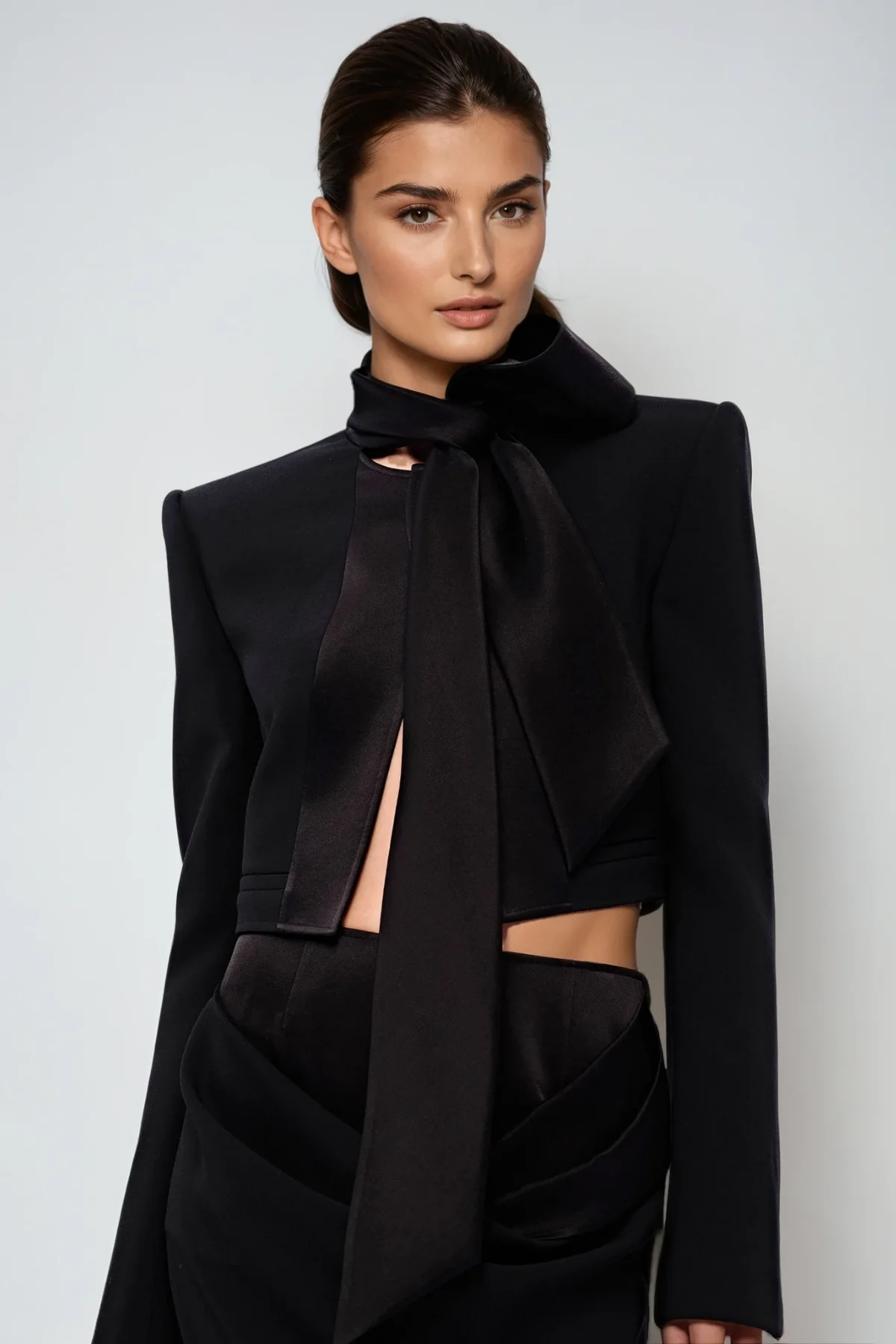 Elevate your outerwear game with the Versatile Long Sleeve Jacket with Detachable Scarf. This stylish jacket offers versatility with a detachable scarf, allowing you to switch up your look effortlessly. Crafted with long sleeves for full coverage and comfort, this jacket is perfect for any occasion. Its timeless design is guaranteed to impress. Stretch Factor: Non-Stretch. To keep this chic essential clean, simply machine wash gently. Please note that color may vary due to lighting. Images without a model are closest to the true product color.