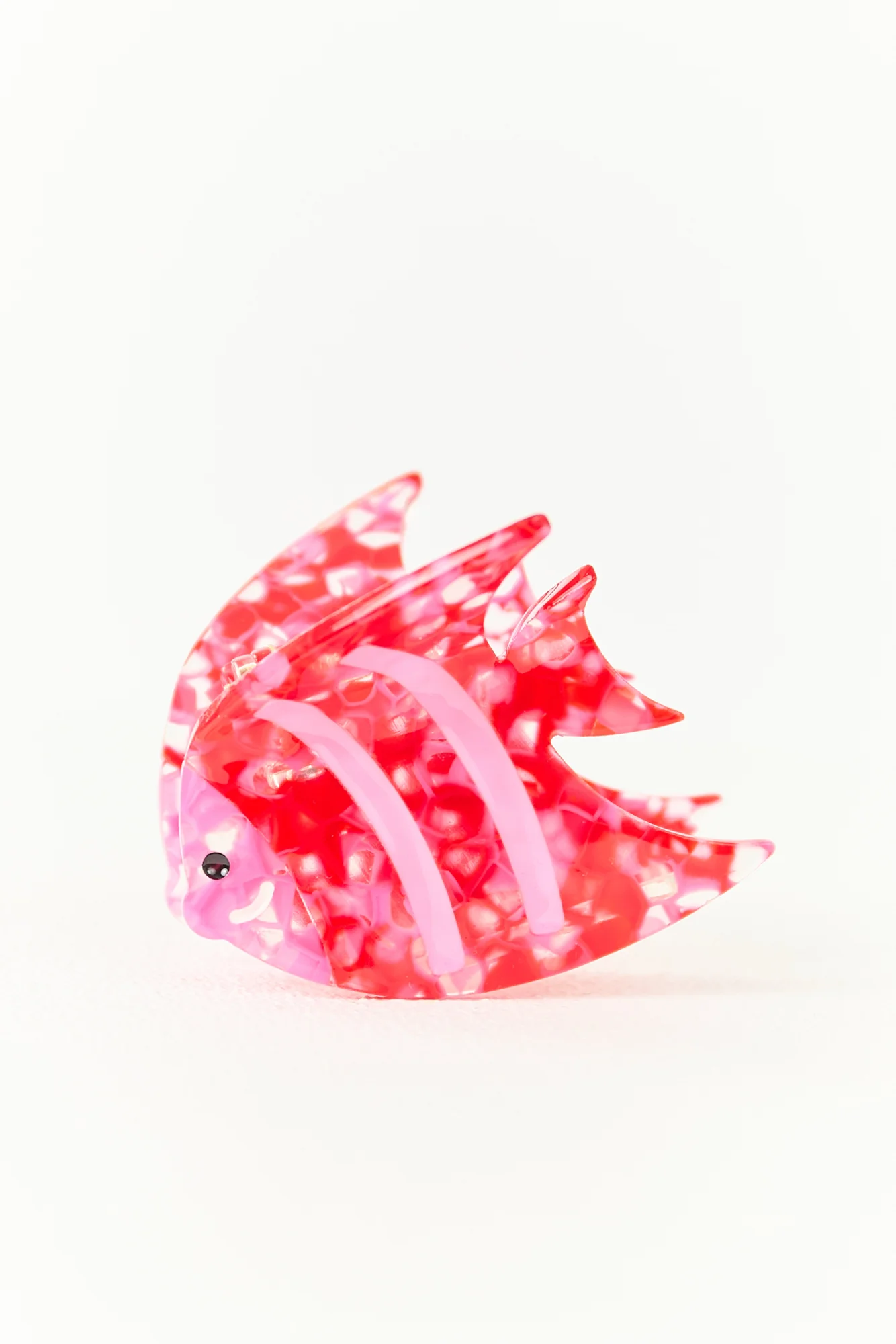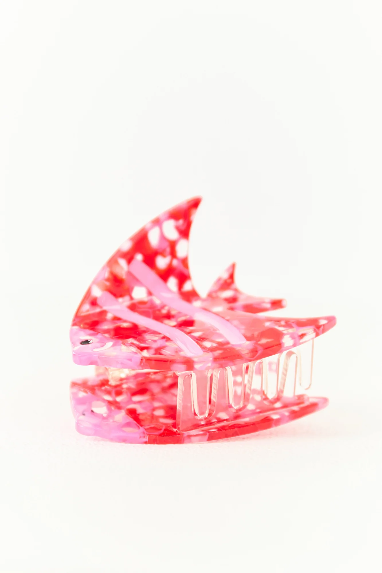 Make a splash this Summer with our adorable Vibrant Ocean Fish Hair Claw Clip! This nautical-inspired hair accessory features a charming pattern in shades of Raspberry, Baby Pink, White, and Black. The alligator clip ensures a secure hold. Perfect for adding a touch of seaside charm to any outfit! Imported. Clip Length: 2 inches, Width: 2.5 inches.